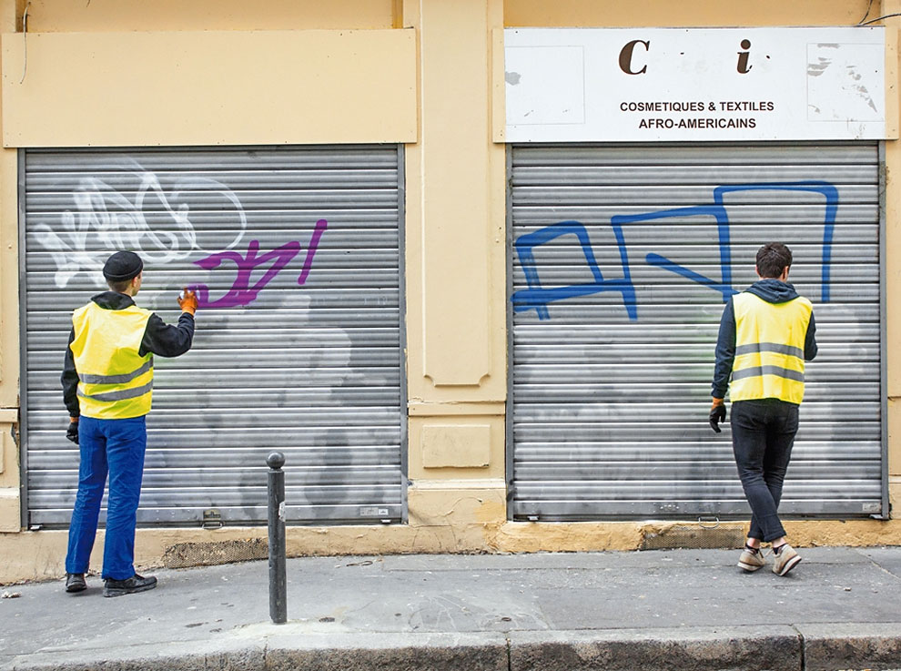 Tout ce genre de graffitis réalisés par des graffeurs qui ont tellement écriture laide et illisible comme celle des médecins, Français Mathieu Tremblin remplace par des inscriptions lisibles.