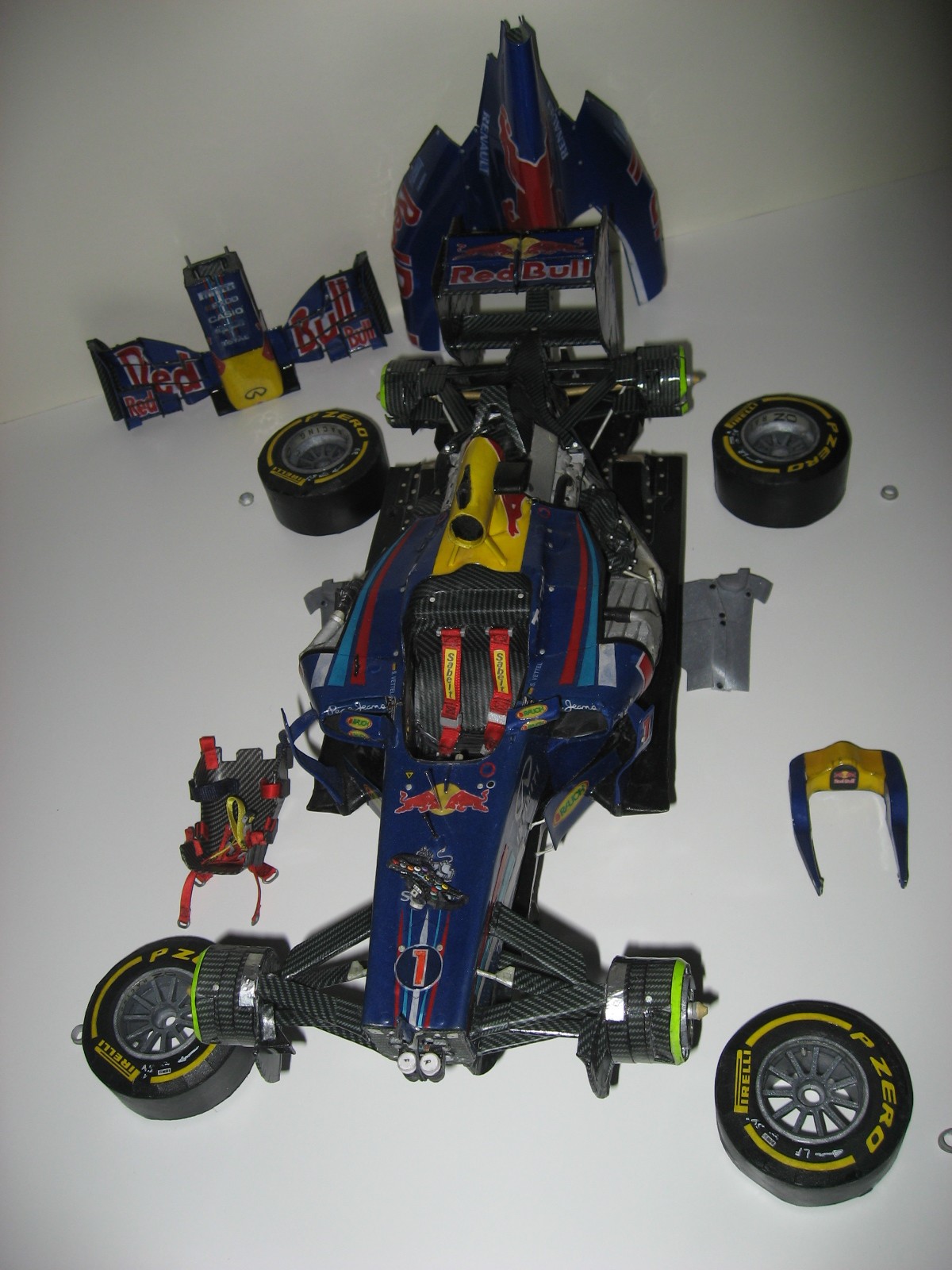 Alors il a préparé modèle F1 - Red Bull Racing rapport 1:10, qui a été produit par 800 heures et composé de 6500 pièces différentes. A ce jour, il en a fait toute une collection. Vous pouvez voir tout le processus de fabrication sur son site Web. Nous vous proposons quelques photos.