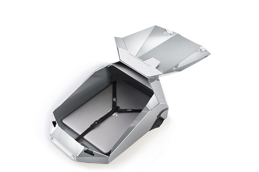 Entreprise néerlandaise Gris uni au lieu de chercher une solution dans les métaux durs, elle a préféré essayer l'aluminium pour son sac à dos en plus des polymères.