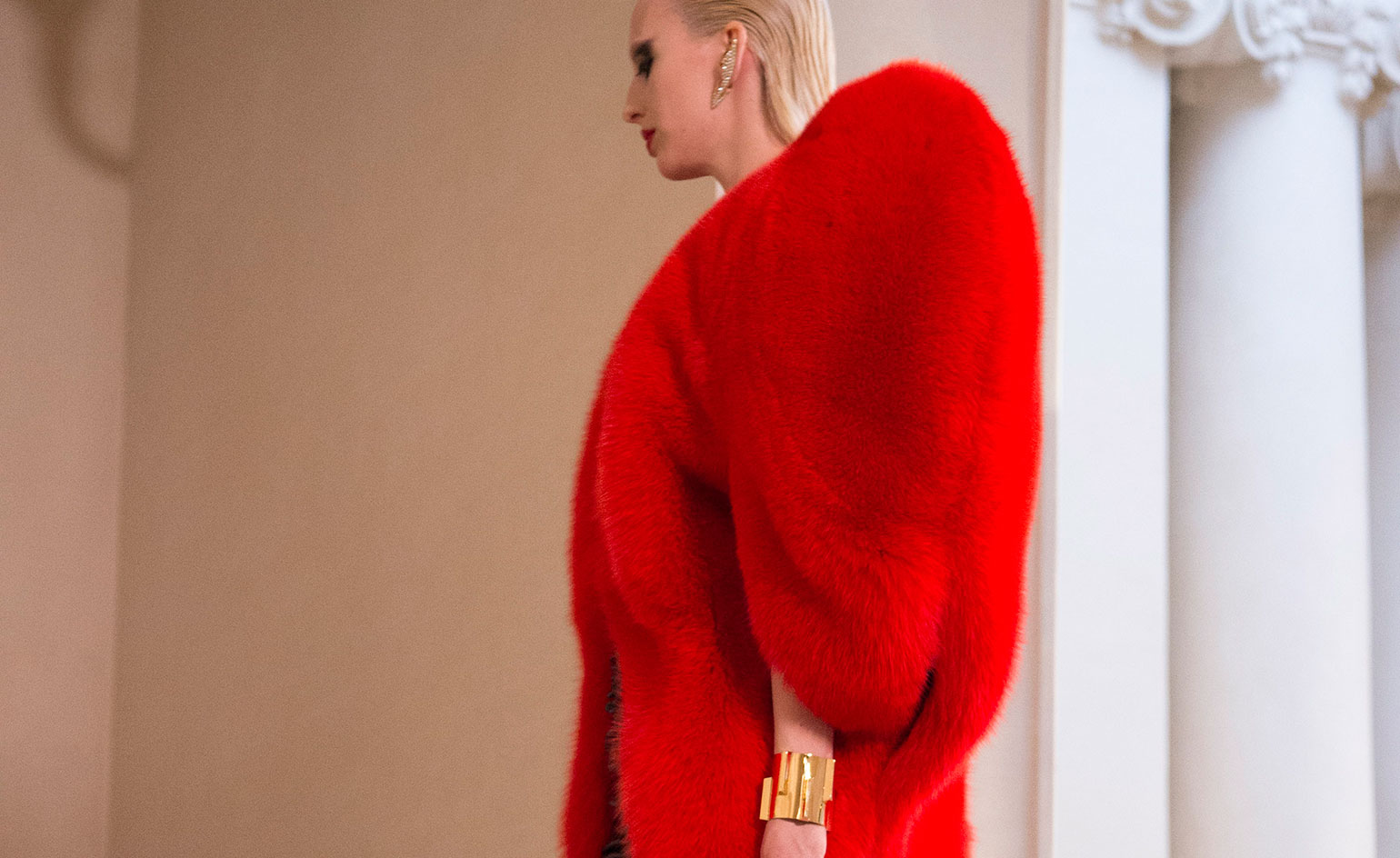 Plašč v obliki srca je del poslednje kolekcije (jesen 2016), ki jo je za modno hišo Saint-Laurent pripravil oblikovalec Allez Slimane. Ta je bila predstavljena v dveh delih. Delno februarja à Los Angeles (Part 1), potem pa še à Paris na tamkajšnjem tednu mode (Part 2) marca 2016. S kolekcijo, predstavljeno v Franciji, je želel na simbolen način izraziti svojo ljubezen do francoske prestolnice, in kako bolje, kot to storiti z rdečim plaščem iz lisičjega krzna v obliki srca?