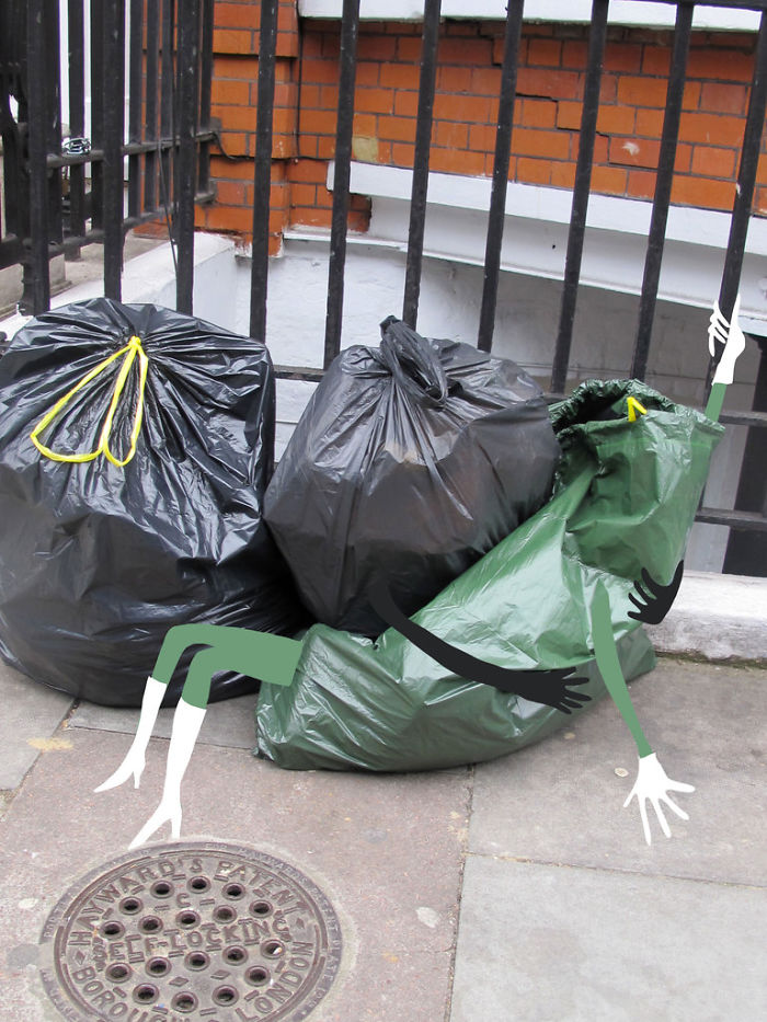 Sandra Estrade Boulet c'est une illustratrice qui ne manque pas d'imagination. Mais il ne transpose pas ses idées sur une feuille de papier ou une toile blanche, mais les prend comme motif. photos de rues parisiennes, qu'elle ajoute avec des images et des idées personnelles imagination. Le résultat est des combinaisons ludiques et chanceuses qui montrent Paris sous un tout nouveau jour. Découvrez comment un manche ordinaire est devenu un parfum, un cône une sorcière sur un balai, un bouquet d'herbe sur le trottoir une pom-pom girl, etc.