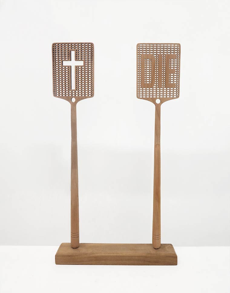 Ses créations sont loin d'être banales. Un cas de objets bizarres avec un message fort et un penchant pour l'humour cynique, et ses œuvres permettent de repenser la finalité des objets du quotidien.