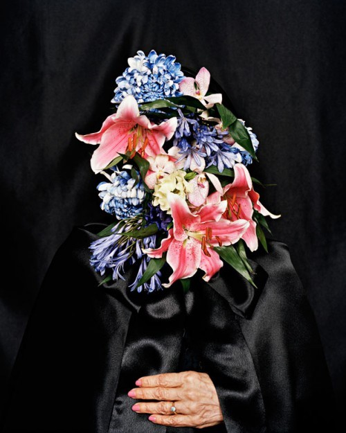 Photographe Robyn Cumming c'est dans le surréaliste Série de photos de choses de dame ou Les femmes disent que les beaux visages de femmes ont été remplacés par de beaux symboles de féminité et ont ainsi obscurci les vrais visages des portraits. On dit qu’une femme est douce comme une colombe…