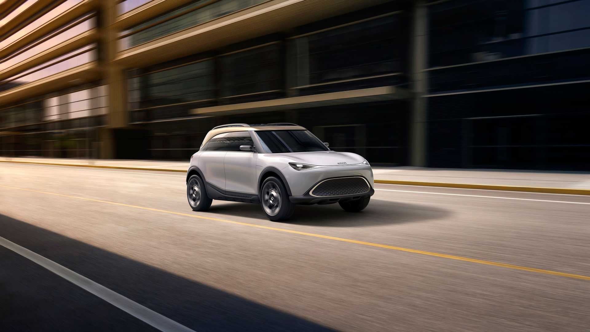 Le concept a été conçu par Daimler et sera fabriqué par Geely, sur leur plate-forme pour voitures électriques. l'avenir intelligent repose sur 21 pouces jantes, et les parties avant et arrière sont mises en valeur par des phares accrocheurs. En termes de design, il diffère grandement des autres modèles intelligents, en particulier à l'intérieur, qui est minimaliste, et on y trouve un grand 12,8 pouces écran tactile.