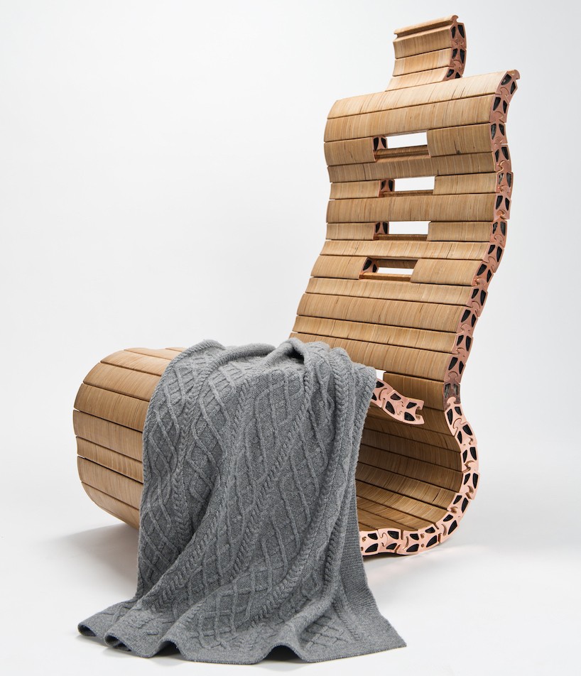 Spyndi est une chaise aux mille visages composée de 60 pièces qui peuvent être assemblées en d'innombrables variantes. La chaise faite à la main est l'œuvre du designer de meubles lituanien Mindaugas Zilionis, qui s'est inspiré de la colonne vertébrale humaine. Vous pouvez donner à ce meuble non conventionnel la forme que vous souhaitez. Ainsi, il peut s'agir non seulement d'une chaise, d'un transat, d'un fauteuil ou d'un fauteuil à bascule, mais aussi d'un repose-pieds, d'une cloison, d'une aide à l'exercice, d'une table basse et bien plus encore.