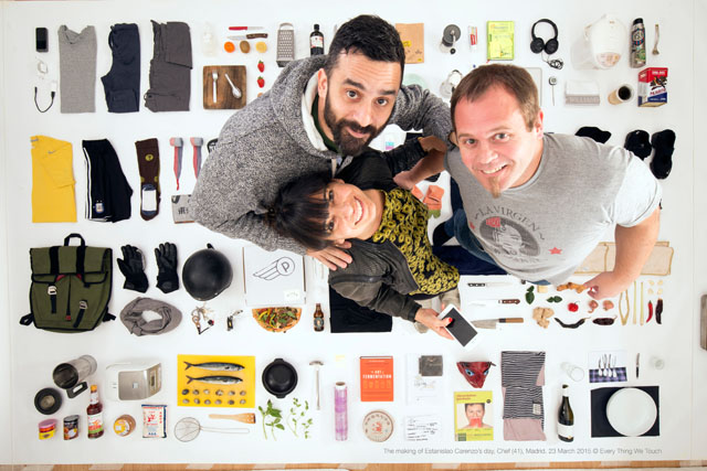 Nombre stvari, ki se jih ljudje dotaknemo v 24 urah, je presenetljivo. Dokaz je delo umetnice Paule Zuccotti, ki je v svojem projektu Every Thing We Touch personnes z različnih koncev sveta (od Melbourna do Madrida) prosila, naj si zapišejo stvari, ki se jih dotaknejo čez dan, potem pa je vse predmete zložila predse in zbirko fotografirala.
