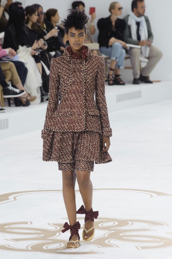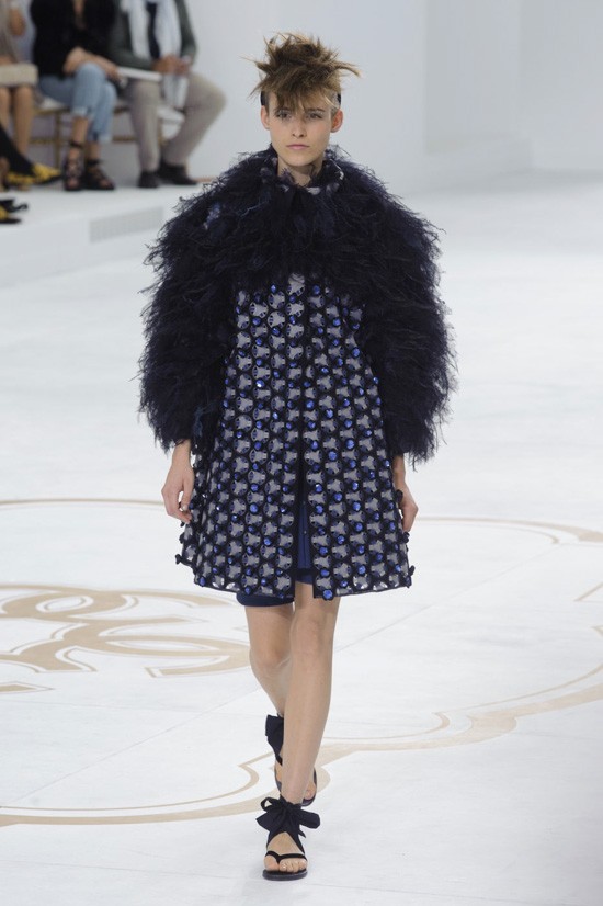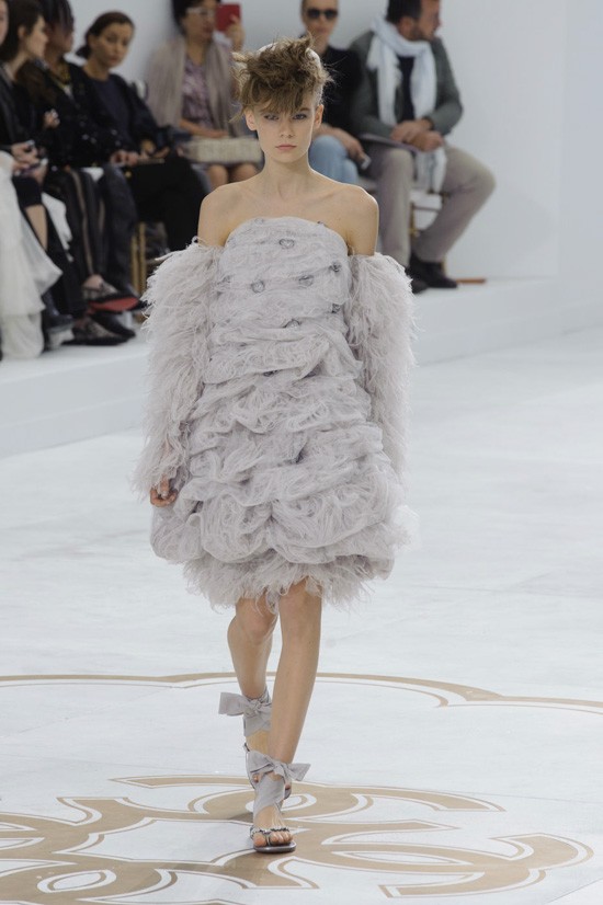 Karl Lagerfeld je inspiracijo za najnovejšo “haute couture” kolekcijo jesen-zima 2014/2015 poiskal pri znamenitem francoskem arhitektu, ki je navdihnil že mnoge – Le Corbusieru. Kolekcijo, ki jo je poimenoval “Le Corbusier gre v Versailles”, sestavljajo prestižni modni kosi, ki vsekakor odstopajo od kakršnegakoli minimalizma. Detajlirano okrašena oblačila, med katerimi seveda najdemo tudi nekaj tvidastih, navdušijo s precizno razporejenimi kristali, resami in perjem. Največ pozornosti pa so tokrat ukradli odlični nizki sandali, ki bodo naše gležnje ovili v razkošne pentlje. Čarobno!