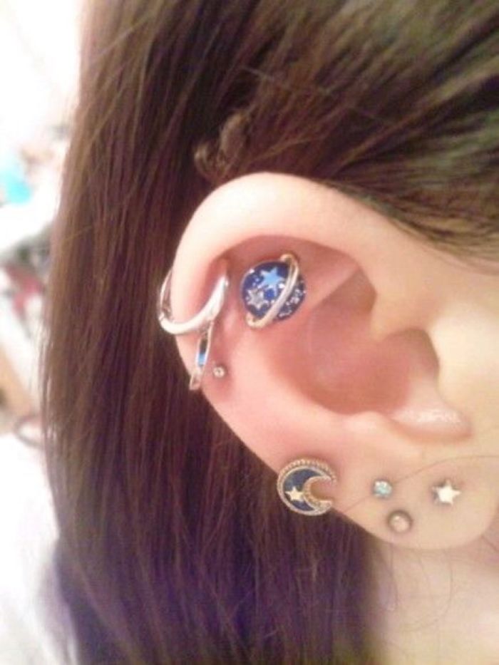 Pour certains, une oreille n'est qu'une oreille, pour d'autres, l'univers en miniature. Certaines personnes se contentent d'une boucle d'oreille, d'autres se percent les oreilles avec une série de boucles d'oreilles. La dernière tendance impressionnera même ceux qui n'ont peut-être pas été trop enthousiastes à propos de cette dernière jusqu'à présent. De plus en plus de filles décorent leurs oreilles avec une série de boucles d'oreilles lumineuses disposées comme des étoiles et des planètes dans le ciel nocturne.