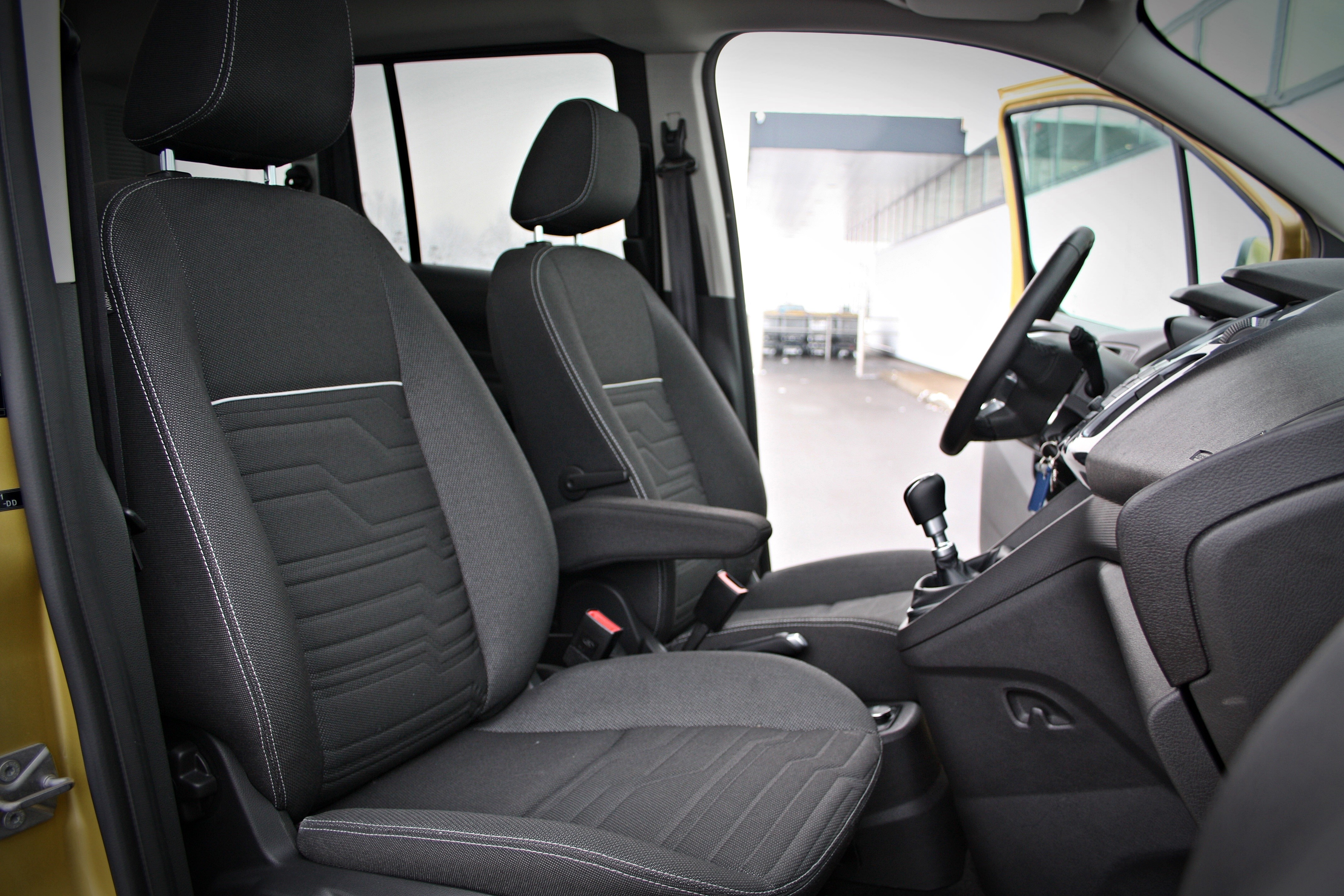 Ponujajo pa sedeži konkretno mero bočne opore in všečno grafiko oblazinjenja, vstopanje in izstopanje pa je enoprostorsko visoko. Voznik ima na razpolago tudi sredinski naslon za roke, ki pa je dokaj ozek. Plastika je dokaj trda, a deluje kakovostno, glede na segment je celo med boljšimi. Določena stikala na dnu sredinske konzole nepriročno prekriva ročica pohvalno serijskega šest stopenjskega menjalnika, glede odlagališč in predalov pa ga prekaša samo kakšen kangoo.