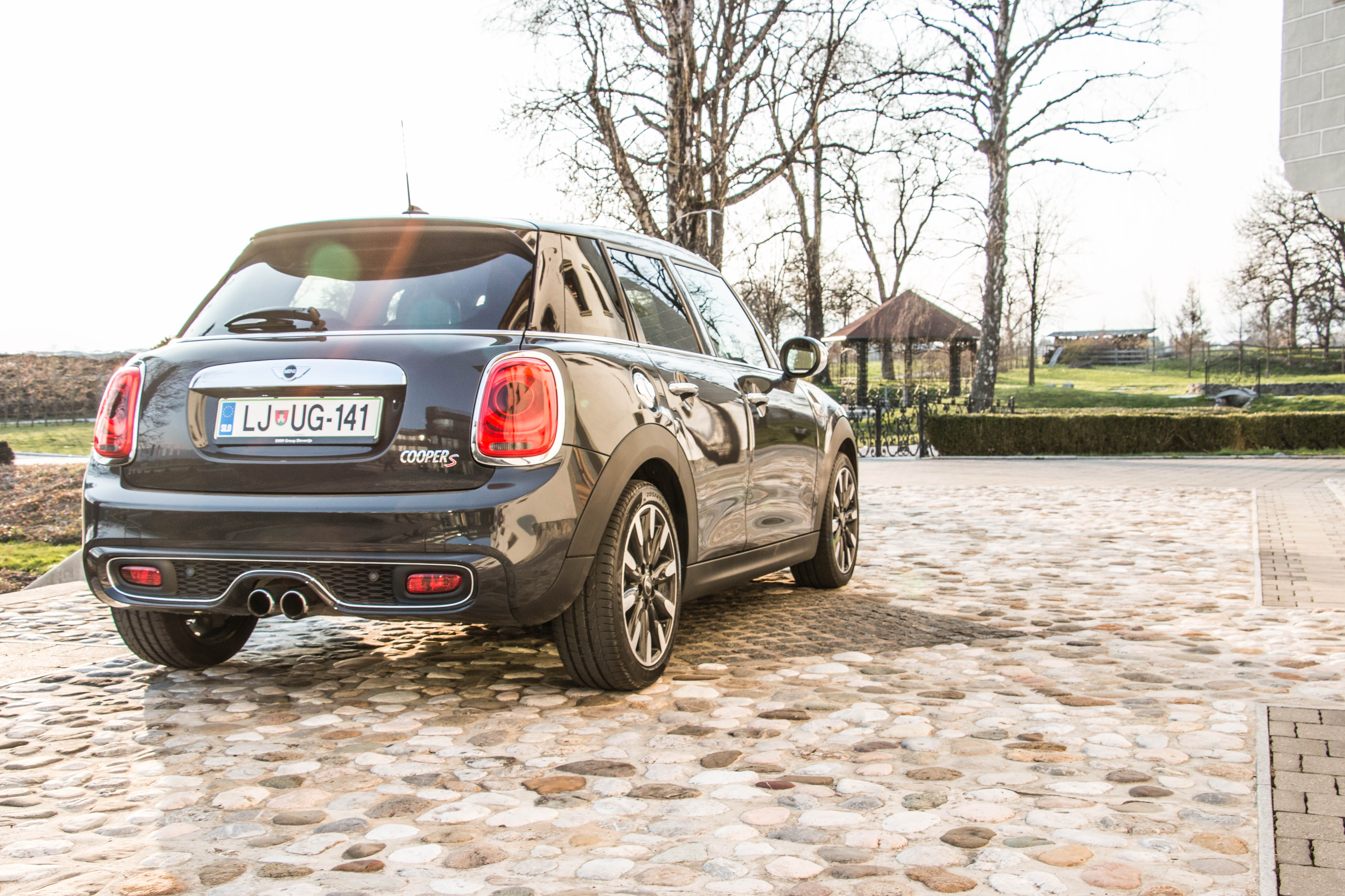 S na zadku vozila v osnovi obljublja veselje v vožnji, ki ni le slogan bavarskega avtomobilističnega velikana, ampak predznak vseh Mini-jev. Zabava je multicouche in se prične pri čudovitem zvoku, ki je ravno prav močan, da vas bo vedno znova opomnil, da če želite z njim lahko naredite marsikaj. Nostalgično se pri vožnji z odprtimi okni lahko vsake toliko zasliši pok iz izpušne cevi in prijetno tipično pogrgravanje ob padcu vrtljajev.