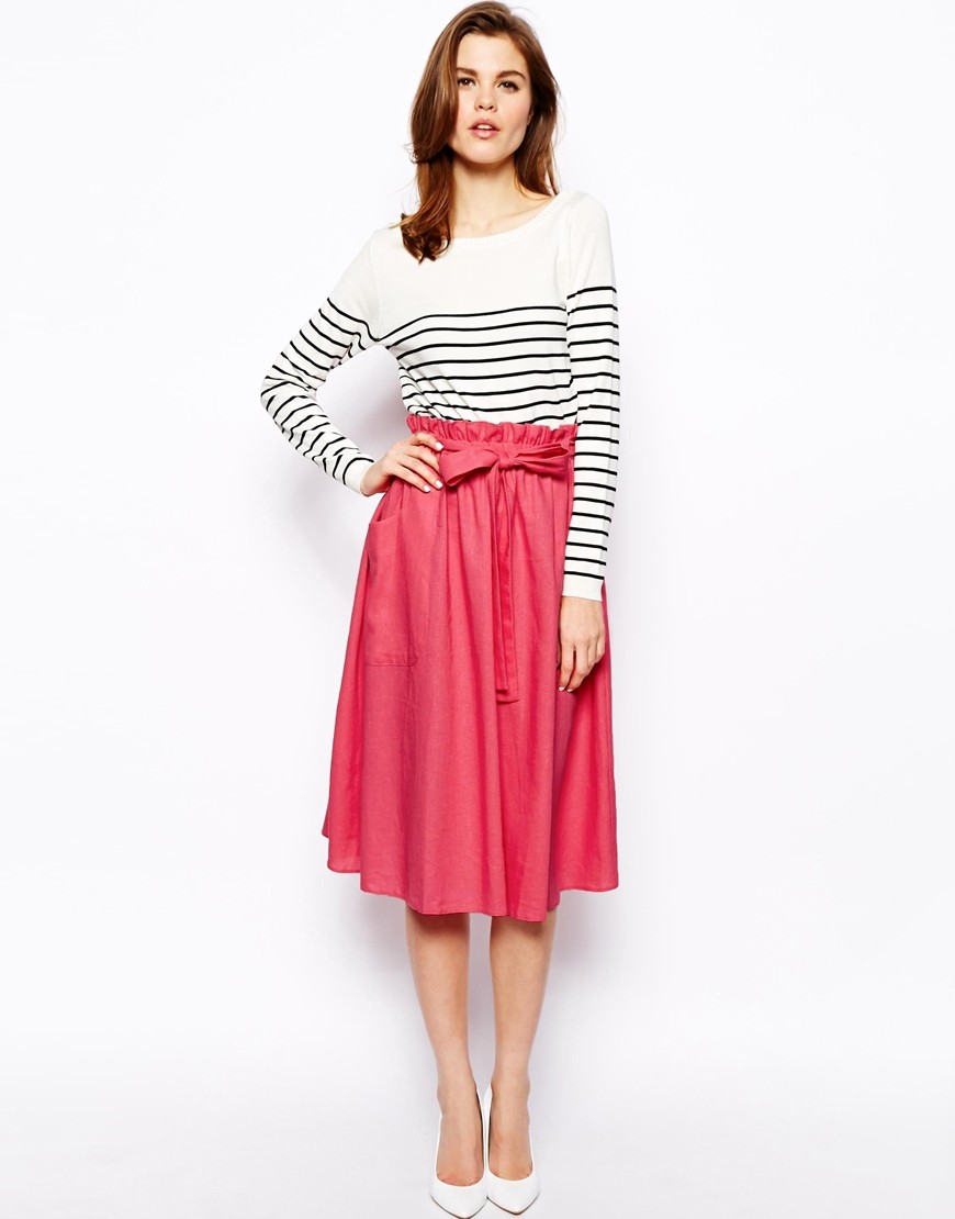 Tako kot pri vsaki modni kombinaciji, je tudi pri stiliranju midi-krila pomembno ravnovesje. Krilo v živahni barvi fuksije oblecimo v kombinaciji z bretonsko majico, plisirano in polno midi-krilo pa nosimo v kombinaciji z enostavnim topom in elegantnim plaščem.