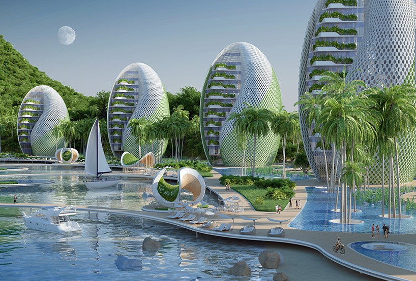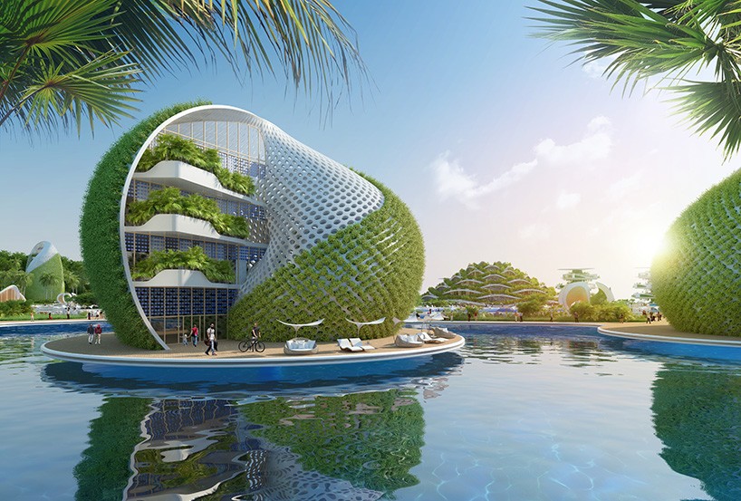 L'architecte est s'est inspiré de la biomimétique, la science qui consiste à imiter la nature et ses modèles, ainsi que les découvertes scientifiques sur le thème de la protection de l'environnement. Le projet doit être construit uniquement avec des matériaux recyclés, mais cela sera aussi autosuffisant et autosuffisant. Financement participatif (financement participatif) servirait à maintenir la qualité, afin que le soutien à l'environnement local et aux populations, sous forme de revenus et d'emplois, ne soit jamais affecté. L'idée est également de Des écotouristes se sont portés volontaires pour nettoyer les plages de cette région.La station dispose deux entités principales, à savoir hôtels en forme de coquillages et d'escargots et centre, qui se dresse au milieu du complexe, abrite également le centre nautique et le laboratoire scientifique. À l'est du complexe, se trouve un 12 tours en spirale de différentes hauteurs, qui contiennent des appartements et qui tourner autour de leur axe, afin qu'ils captent le soleil. Ainsi, vous pouvez profiter d'une vue différente à chaque heure de la journée. Hôtels en forme d'escargot sont situés sur le côté ouest du complexe.