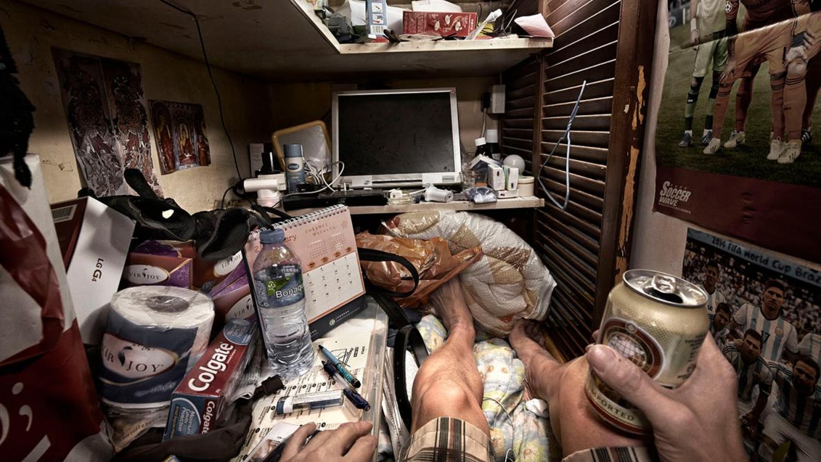 La plupart des gens ne peuvent pas imaginer ce que c’est que de vivre dans un si petit espace. photographe du National Geographic Benny Lam Il décide alors de présenter les résidences dans une série de photographies qu'il appelle Pris au piège ( Attrapé).