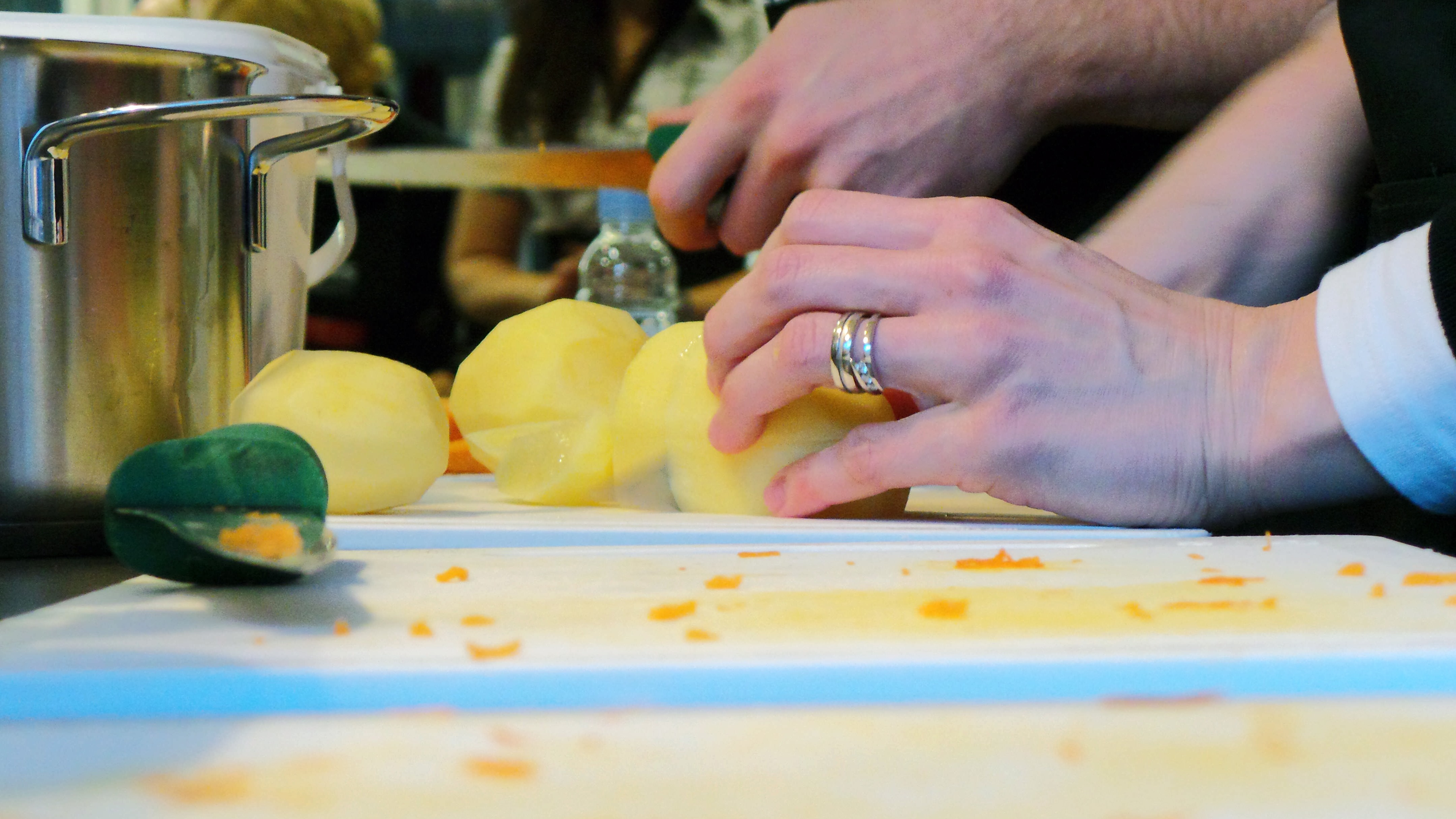 Sous l'œil vigilant du chef Dragan Marjanovica du resto Kaval nous avons préparé des délices de carnaval, comme la soupe de potiron, la langue de bœuf sur un lit de radicchio et, comme plat principal, du poisson de porc en pâte avec de la purée de pommes de terre au chou. Maître pâtissier Greg Rode d'une pâtisserie Lolita mais il nous a appris à préparer des desserts de carnaval. Un vigneron s'est également présenté lors de l'académie Blazic.