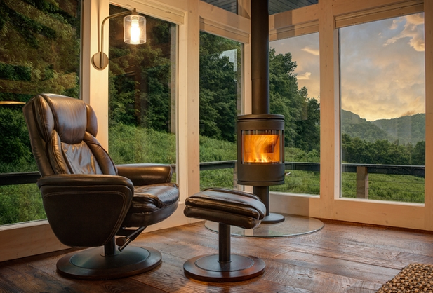 Serre La Maison de Verre Elle se situe un peu plus loin, dans les magnifiques forêts du Wisconsin, aux États-Unis. Ce petit chalet surprend par son intérieur confortable et impressionne par sa cheminée extérieure féérique.