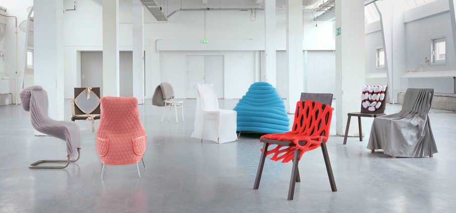 Studio de design néerlandais Bernotat et Cie créé une collection "Usure de la chaise», un ensemble de « vêtements » permettant de rénover des sièges anciens ou d'améliorer des sièges inconfortables. Inspirée des tricots de grand-mère, des gants de cuisine, des sweats à capuche chauds, des sacs à provisions en filet et des araignées de travail, et de nombreux attributs bien pensés tels que les poches à journaux, la collection transforme de manière ludique notre expérience d'assise quotidienne.