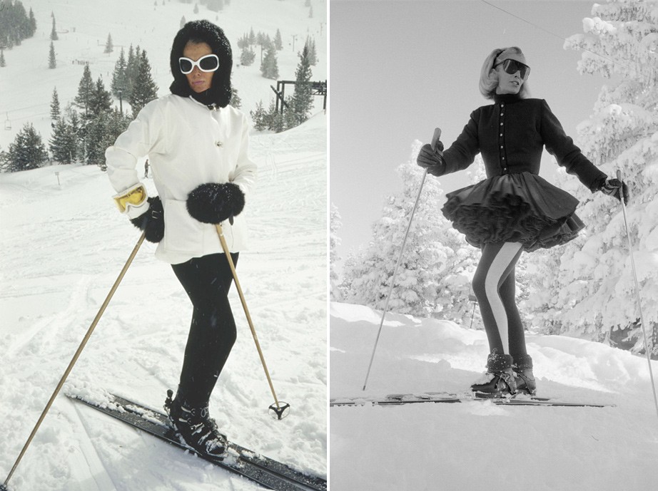 Comme icônes de la mode razumemo ženske, ki niso sledile modnim trendom, ampak so te krojile po svojih merilih in jih nemalokrat tudi same postavljale. Valižanska princesa Lady Diana Spencer je tudi na belih strminah – oblečena v enodelen kombinezon v kombinaciji z usnjenimi črnimi rokavicami in diamantnimi uhani – izžarevala svojo značilno toplino in večno eleganco. Brigitte Bardot je modni svet zaznamovala s svojim uporništvom. Še dandanes so črtasti topi, balerinke, razmršeni lasje, našobljene ustnice in črno obrobljene oči “njeni”. Na zasneženih pobočjih je prisegala na šik pokrivala in ženstvene smučarske komplete. “Ledena princesa” Grace Kelly je prisegala na klasiko. Pomislimo na debelo pletene ribiške puloverje in črna sončna očala. Rita Hayworth je z rdečo šminko in širokim nasmehom tudi med smučanjem poskrbela za svoj zapeljiv videz. Audrey Hepburn pa je svetu dokazala, da je ženska lahko lepotica tudi s fantovsko postriženimi lasmi. Ena največjih modnih ikon je uglajenost odsevala tudi na snežnih strminah.