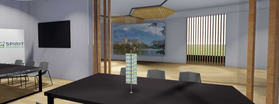 Le pavillon est conçu comme un environnement intelligent qui permettra aux visiteurs de visiter et de découvrir virtuellement l'avenir à l'aide de solutions numériques avancées. C'est à l'intérieur du bâtiment l'accent sur les technologies modernes, murs, sols et plafonds LCD, qui présenteront un système de vitrines et d'installations intelligentes Innovation, savoir et excédents économiques slovènes. Avec une lumière scintillante au rythme des battements de cœur, le pavillon invitera les visiteurs de loin à une expérience holistique unique de la Slovénie avec tous les sens.