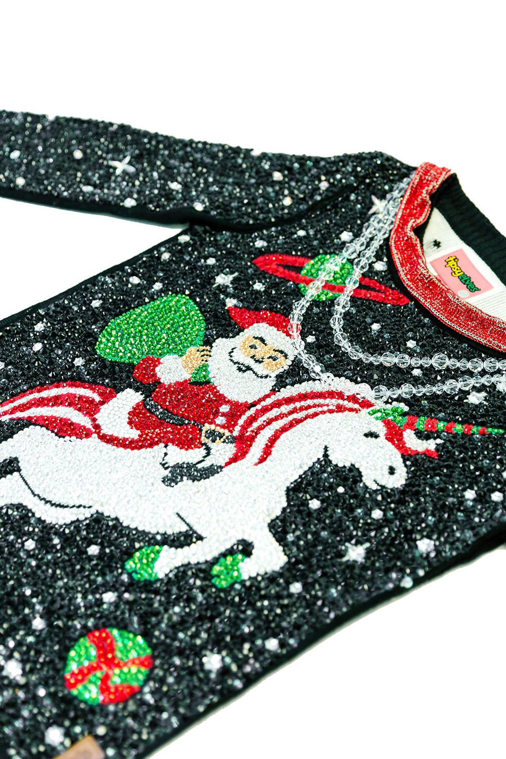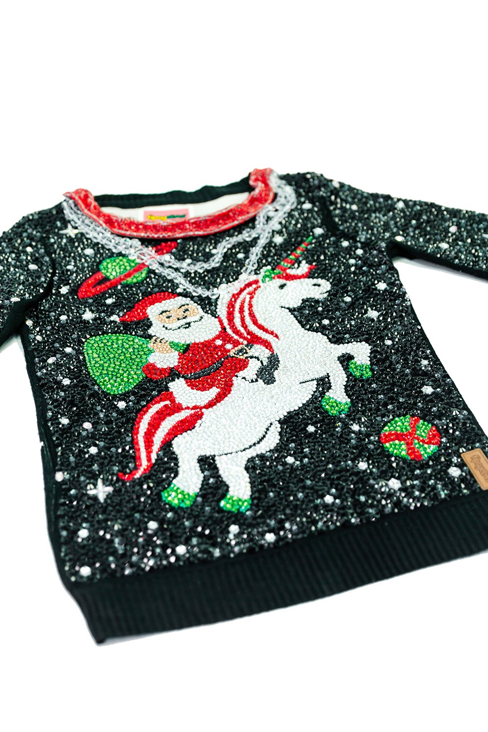 Le pull de Noël le plus cher - vous devez débourser une fortune pour cela 28 730 euros – est saupoudré de quoi 24 274 cristaux, et dessus vous pouvez trouver le motif du Père Noël chevauchant au lieu d'un renne sur une licorne. Ils ont dépensé pour faire le pull 52 heures. Il faut ajouter que depuis 2011, chaque troisième vendredi de décembre est célébré aux USA Journée du chandail de Noël moche. Vous pouvez en trouver quelques-uns dans l'article Les pulls de Noël les plus laids - Tellement laids qu'ils sont beaux.