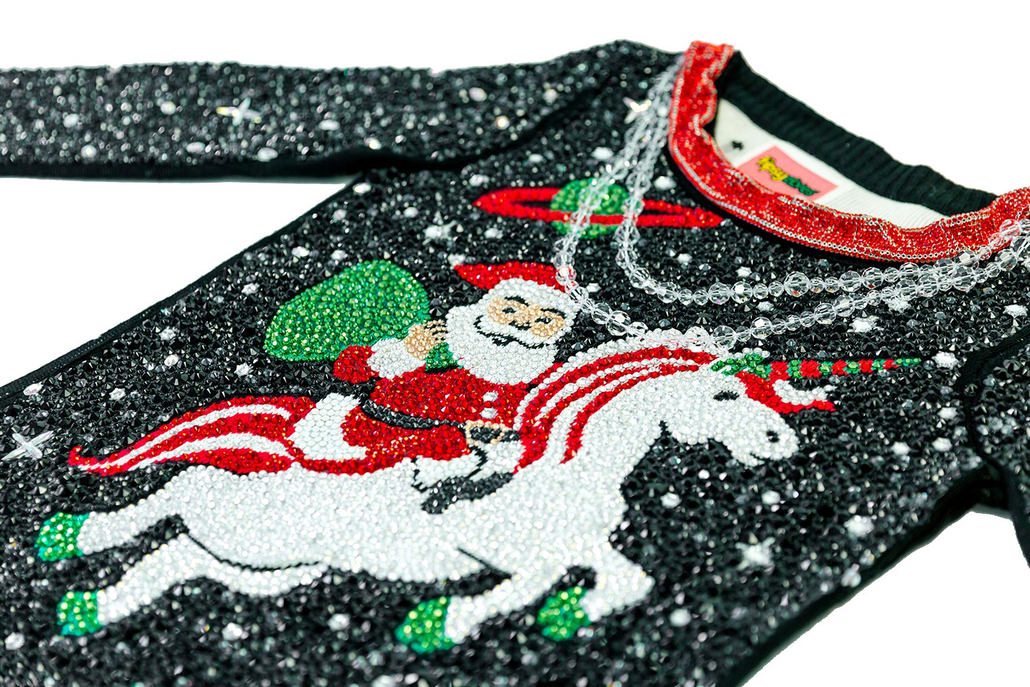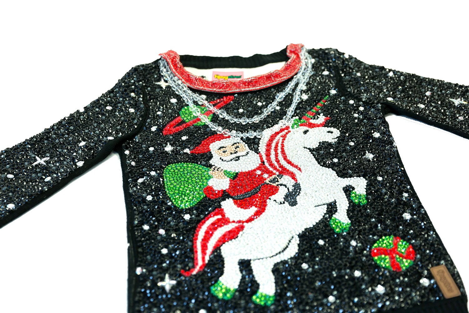 Pourquoi est-ce Pull de Noël, qui a été produit par Elfes éméchés, qui dit qu'il crée les vêtements les plus moches du monde – ils ont également été récompensés à plusieurs reprises pour le pull de Noël le plus moche – si cher ? Parce que pour fabriquer ce chandail moche (ne vous inquiétez pas, ils l'ont nommé eux-mêmes, nous ne sommes pas inutilement impolis), ils se sont associés à une entreprise Swarovski, célèbres cristalliers.