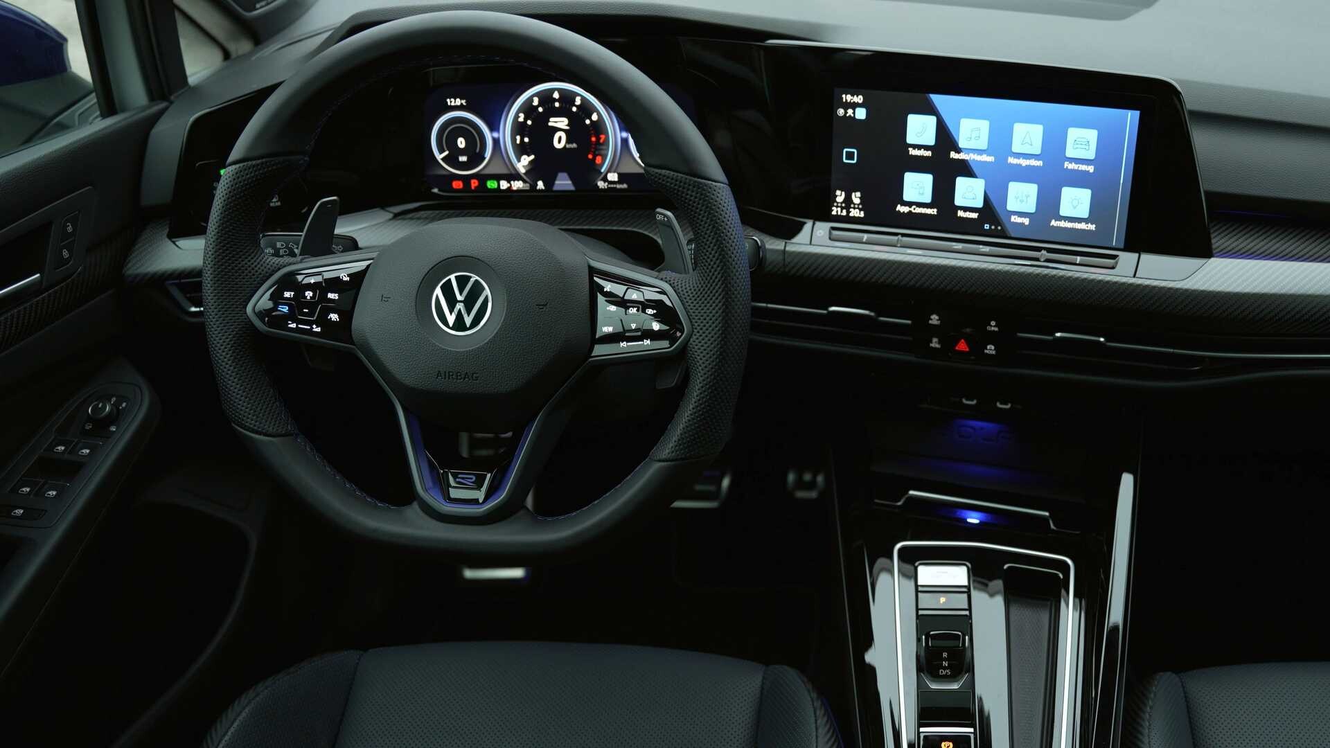 L'édition spéciale apporte la fonctionnalité Émotion Commencer, qui lors de l'activation et du démarrage ʺenrouleʺ le moteur 2.500 tours par minute, pour plus plus agressif son 'hot-hatcha'. L'équipement R-Performance fait déjà partie de l'équipement de base de la série anniversaire et comprend un déflecteur d'air de toit, un contrôle vectoriel de couple et des modes de conduite supplémentaires. Spécial et Dérive. L'édition spéciale est marquée par les logos R sur le capot, les ailes et le hayon. Les coques de rétroviseurs sont bleues, mais si le client commande une voiture bleue, ces coques seront peintes en noir. Le chiffre 20 se lit sur le montant B et dans l'éclairage au sol lorsque l'on ouvre les portes de la Golf. 20 pouces les jantes sont disponibles dans une combinaison bleu-noir ou complètement noire.