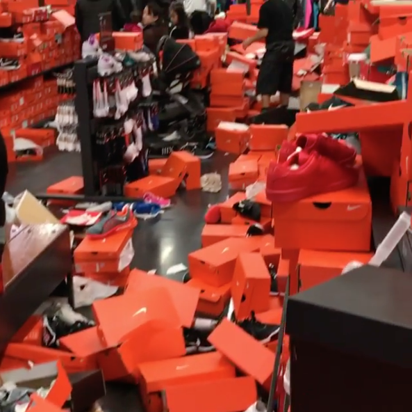 Comme la plupart des magasins, c'est Magasin Nike à Seattle a offert des réductions spéciales ce jour-là et en a fait l'expérience directe transparence des acheteurs, qu'ils ont laissé derrière eux véritable destruction, «vaut» un tremblement de terre d'au moins une magnitude sept sur l'échelle de Richter.