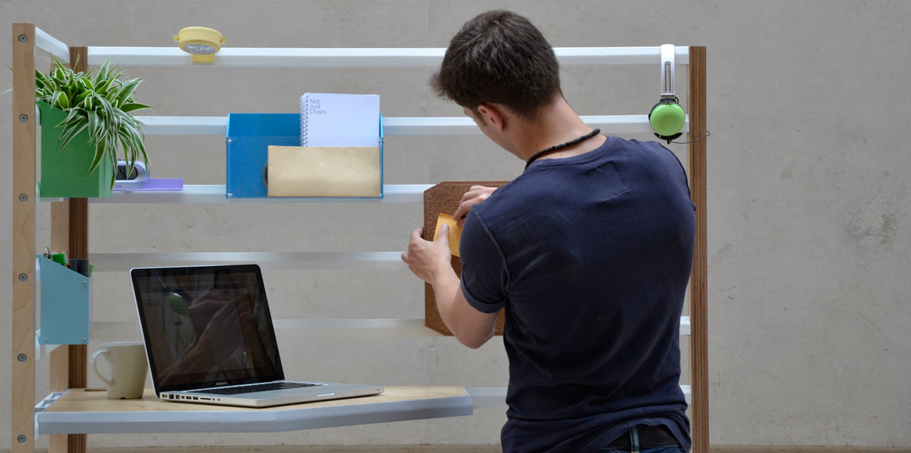 David Manning depuis “Not Just Chairs” je tako ustvaril dizajn delovnega prostora, ki sledi trendom prihodnosti, kjer bomo svojo pisarno uporabljali na različne načine in je bil zasnovan za spodbujanje dinamičnega dela. Edinstven dizajn izdelka vam omogoča prihraniti veliko prostora, saj se lahko enostavno zloži, kadar ga ne rabite uporabljati, ob enem pa vam tudi sam zagotavlja dober prostor za shranjevanje stvari.