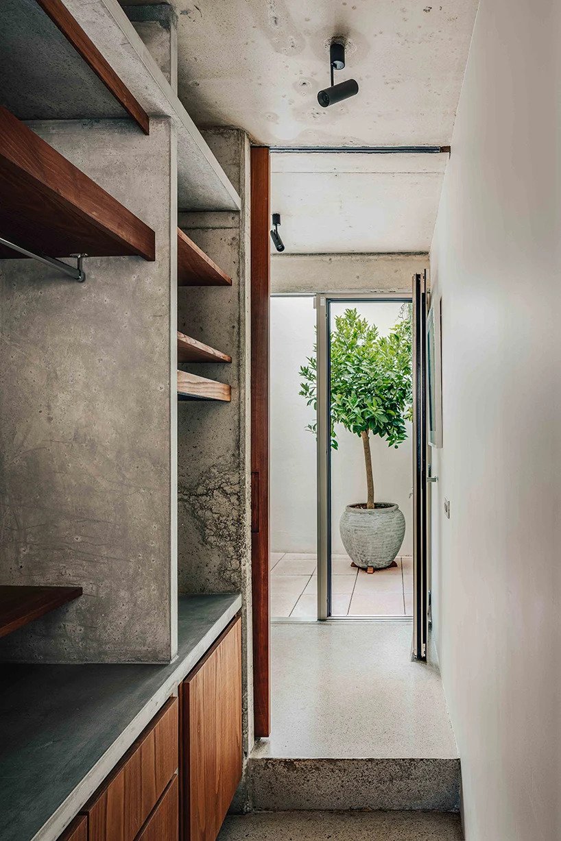 Arhitektka Barbara Appolloni je iz nekdanje garaže “izklesala” oazo iz betona in stekla. Originalna zgradba je bila oblikovana v t.i. stilu “škatle za čevlje”, kjer arhitektura postane del notranje dekoracije, kar ima za posledico resnično sodobne bivalne prostore.