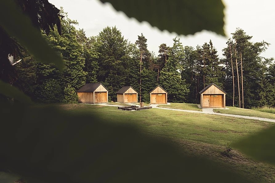 Le korak stran od Plahutnikovega stanu se ob robu gozda nahajajo idilične lesene hiške, primerne tudi za večdnevni oddih. Lesene hiške so preproste, z majhno teraso in veliko stekleno steno, skozi katero se pogled razprostira po okoliških gričkih. Velika zakonska postelja nudi udobje vrhunskih hotelov, lesena kad pa romantično vzdušje. V naravi bodo uživali tudi otroci, saj so na voljo prostor za odbojko, nogometno igrišče ter gugalnice. Čudovit pogled na bližnjo pokrajino odlično dopolnjuje tudi razgledni stolp, ki se dviga 7 metrov v višino in omogoča razgled na Domžale, Ljubljano, letališče in Kamniško-Savinjske Alpe.