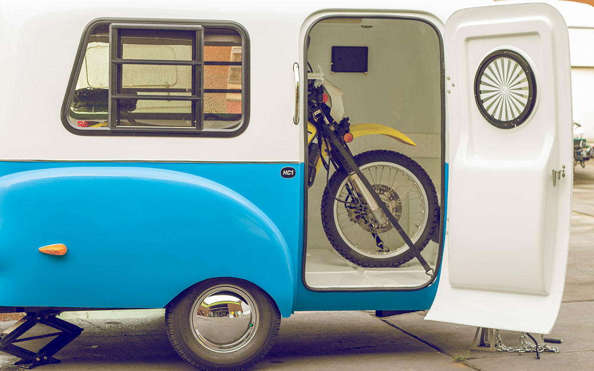 Njeno obliko dopolnjuje nenavadna modularna notranjost, ki si jo lahko uporabnik prikroji po svojih potrebah. Tako lahko notranjost na primer spremenimo v megaposteljo, tovorno površino ali romantičen vikend prostor za dve osebi. Zaradi izjemno lahke in moderne konstrukcije ta 4 metre dolga prikolica tehta manj kot 500 kilogramov in jo lahko za sabo vleče pravzaprav kakršnokoli vozilo. Zunanjost je izdelana iz posebnih gumiranih zlitin in jo seveda lahko naročite v različnih barvnih kombinacijah. Zaradi svoje majhnosti pa jo zlahka parkirate na vsakem standardnem parkirnem prostoru. Ta prikolica pa je seveda tudi neodvisna od omrežja, saj jo dobite s 100-vatnimi sončnimi celicami in kopico že integriranih gadgetov, kot so zvočni sistem Bose, USB- in AC-vtičnice, ogrevan tuš ter priročna tenda. Gremo na dopust?!