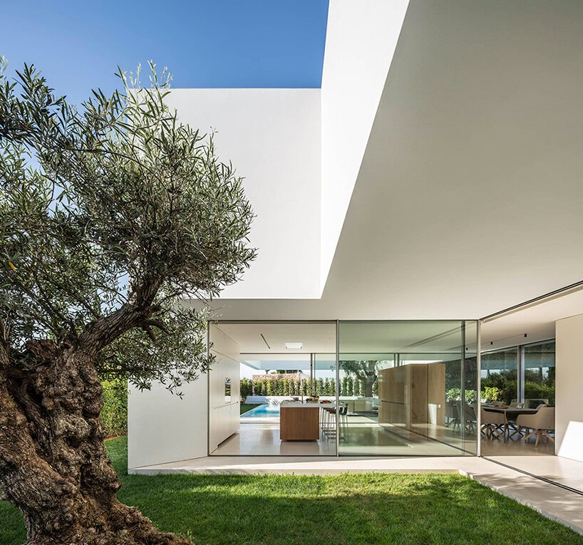 Španski arhitekturni biro Gallardo Llopis Arquitectos je zgradil linearno dvonadstropno rezidenco na španskem otoku Ibiza. Kot že samo ime pove, je hiša grajena okoli treh dreves. Hiša se ponaša s prostornimi in odprtimi prostori, ki brišejo meje delitvijo hiše na notranji in zunanji prostor.