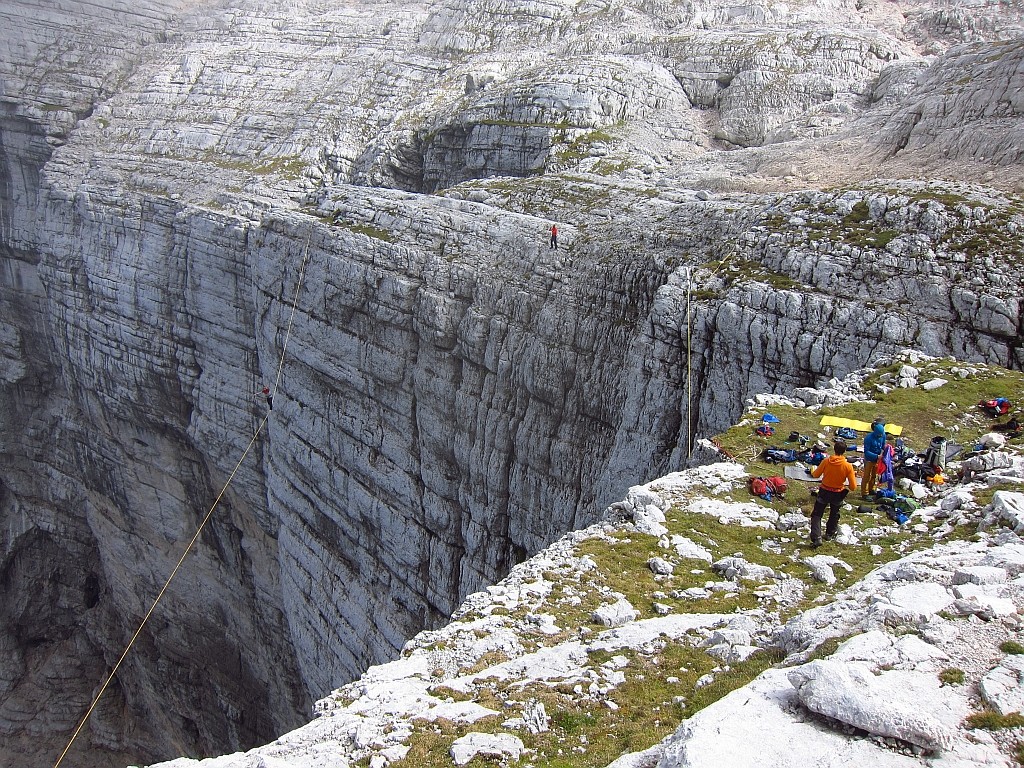 Petim vrvohodcem je uspel neverjeten podvig. S Sfinge, stene Triglava – gre za najbolj prepaden del Triglavske severne stene –, so napeli trak in se več kot 1000 metrov nad tlemi sprehodili po 80 metrov dolgem traku.