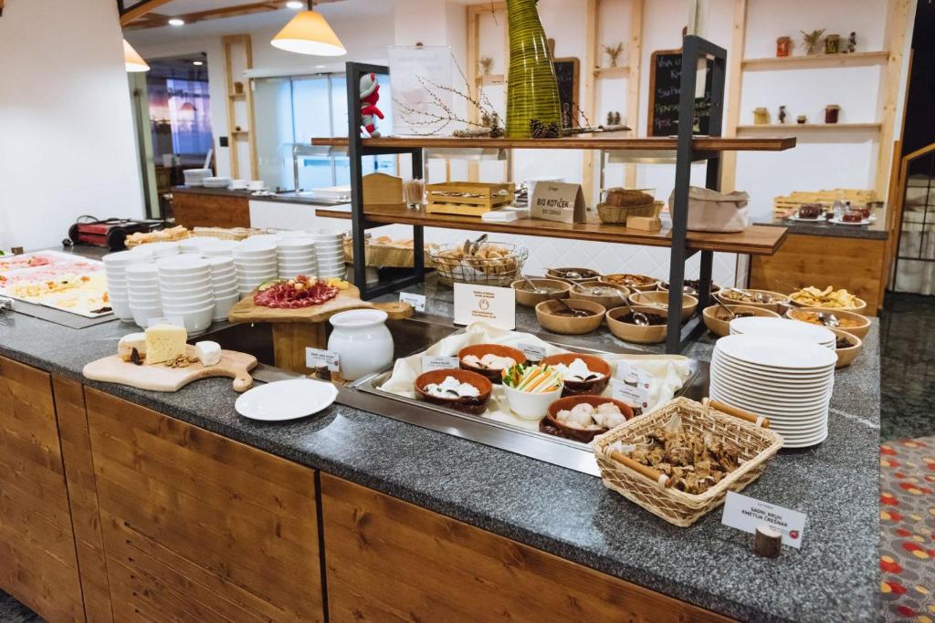 V sklopu hotela se nahaja samopostrežna restavracija, izbirate pa lahko tudi med bogato a la carte ponudba, kjer vam bodo postregli tudi s tradicionalnimi pohorskimi jedmi. Za razvajanje si lahko privoščite tudi postrežbo v sobi, poleg tega pa v hotelu nudijo tudi varstvo otrok.