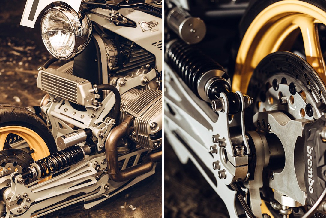 Rezultat govori sam za sebe, jer je BMW R1150 RT 'M001' uistinu nešto posebno i tako funkcionira umjetnički skulptura bez obzira na komplicirano inženjering. Više od 100 komponente motocikla morali unijeti u računalni program CAD, prije nego što su bili spremni za upotrebu. Jedinstvena prednji ovjes je plod Jackovo duboko razmišljanje i par amortizera spašenih od dva otpisana Moto Guzzi V7.