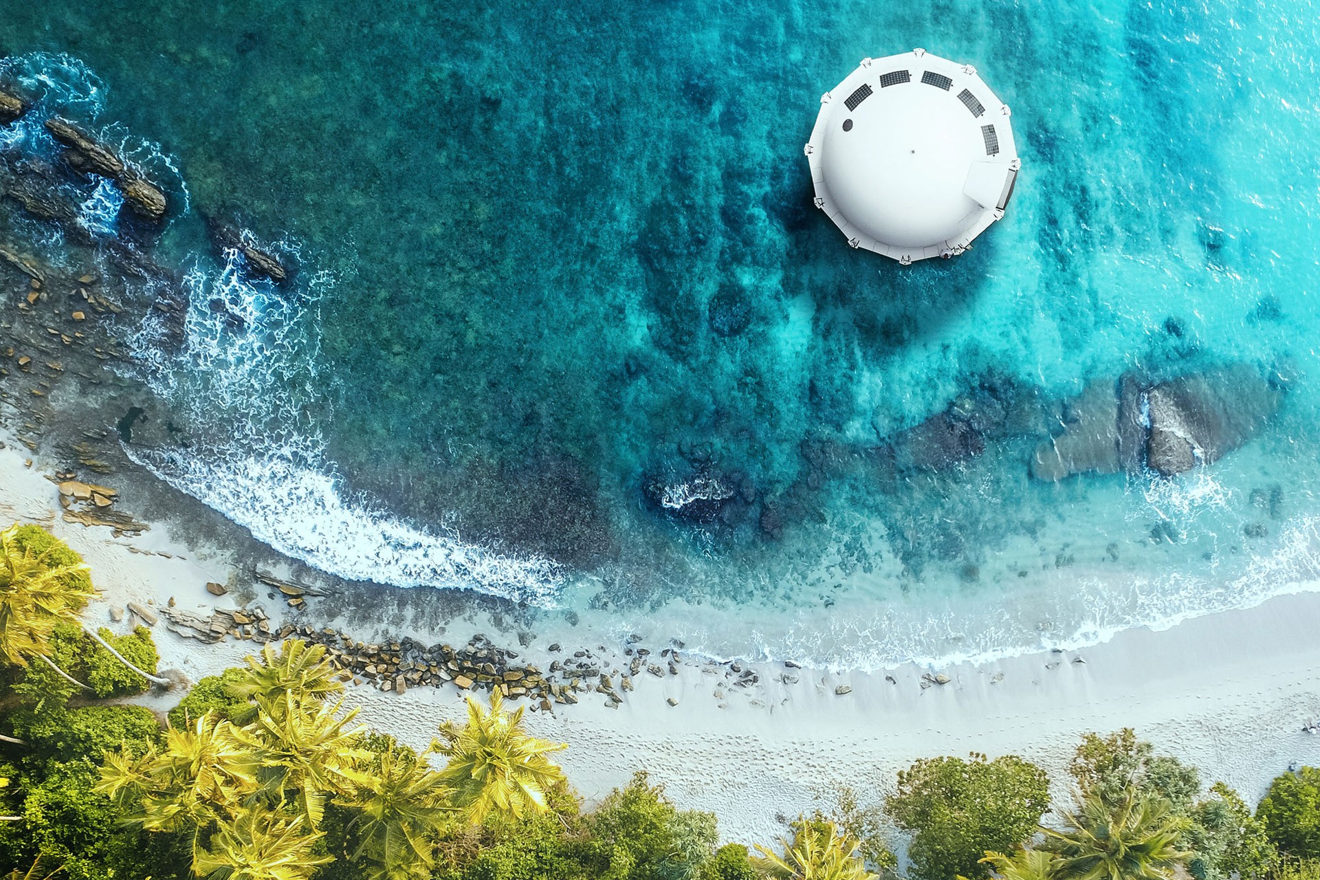 Ekološki prihvatljivi elementi mogu se naći i u njegovoj unutrašnjosti, gdje se nalazi pet (šest) stambenih prostora, odnosno dnevni boravak, spavaća soba, kupaonica, kuhinja te solarij i šank. Pruža ultimativno iskustvo ostakljenje ispod svita, koji pruža prikaz ekosustava. Kad vam dosadi boravak "dolje", samo se pomaknite "gore" na svjež zrak, gdje se nalazi ogromna terasa i staza koja nudi Pogled od 360 stupnjeva na morski okoliš.