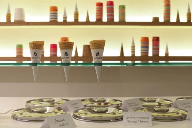 Slastičarnica Moritz Eis, umotan u bijelo i prekriven minimalističkim detaljima, nudi sladolede koji su jednako posebni kao i njegova unutrašnjost. Svi sladoledi napravljeni su od prirodni sastojci, postavljeno više od 50 okusa i čita se ovako: malaga, dinja, šafran, kukuruz, bundeva, mrkva,...