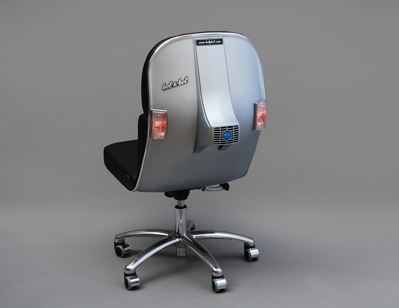Uredske stolice Bel & Bel izrađene su od originalnih dijelova legendarnog talijanskog skutera Vespa iz 80-ih. Ponovnom upotrebom šasije tvrtka iz Barcelone stvorila je originalnu i jedinstvenu okretnu stolicu.