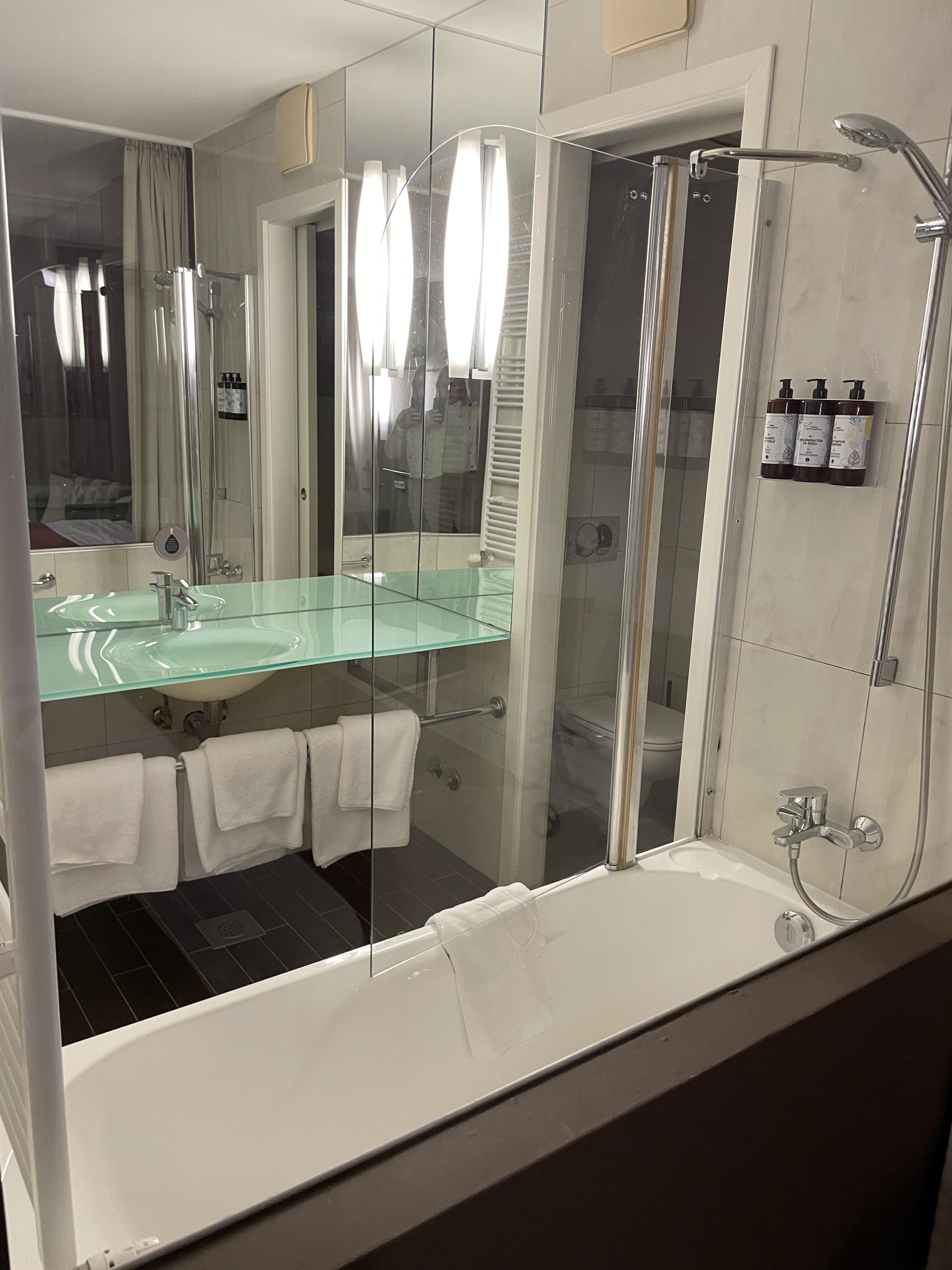 Naša obiteljska soba bila je prostrana i elegantno namještena, s puno prirodnog svjetla i prekrasnim pogledom na zelene površine resorta. Kreveti su bili izuzetno udobni, s luksuznom posteljinom, što je osiguralo kvalitetan odmor. Soba je imala modernu kupaonicu opremljenu svim potrebnim sadržajima, uključujući mekane ručnike i kvalitetne toaletne potrepštine.