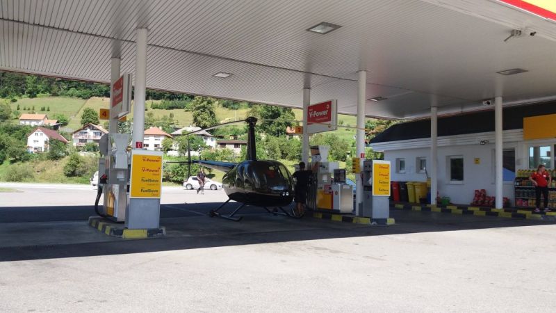 S Slovaške prihaja posnetek iznajdljivega češkega pilota helikopterja, ki mu je zmanjkovalo goriva, zato je moral poiskati najbližjo bencinsko črpalko. Ker letališča ni bilo v bližini, je s helikopterjem pristal kar na bencinski črpalki za vozila. Točneje na črpalki v slovaškem kraju Valaská, ki sicer ni opremljena za točenje goriva helikopterju, toda pilot se je znašel. Vijakarju je namestil kolesa, zložil propelerje in se zapeljal do ročke za dolivanje goriva.