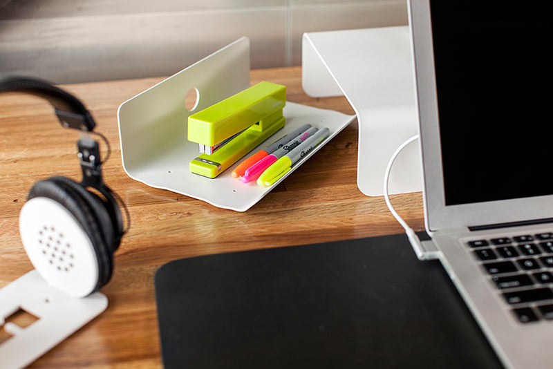 Set pisarniških pripomočkov Cliff, ki so ga oblikovali pri Heckler Design, je izdelan iz debelega in lasersko rezanega jekla in je prevlečen s plastjo, ki je odporna na prah, kar nam bo v pisarni prišlo še posebej prav. Urejena pisarniška miza pomeni bolj osredotočeno delo in Cliff je definitivno ergonomski pripomoček, ki poleg tega v pisarno vnese še nekaj stila.