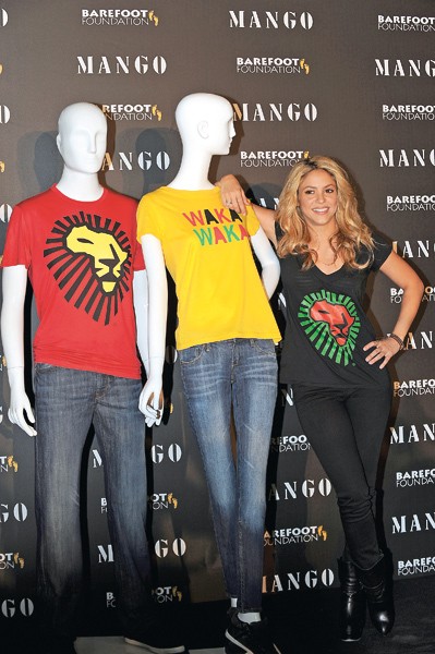 Internacionalna superzvezdnica Shakira in Mango sta v začetku junija lansirala manjšo kolekcijo dobrodelnih majic, ki jih inspirira uradna himna FIFA svetovnega prvenstva v nogometu Waka Waka. Dizajn štirih majic predstavlja duh, vitalnost in energijo gostitelja prvenstva, dobiček od prodaje pa bo doniran institucijam za pobudo osnovnošolskega izobraževanja v Južni Afriki. To je za tamkajšnje otroke ključnega pomena, saj jih je veliko ostalo brez staršev zaradi vojne in različnih bolezni.