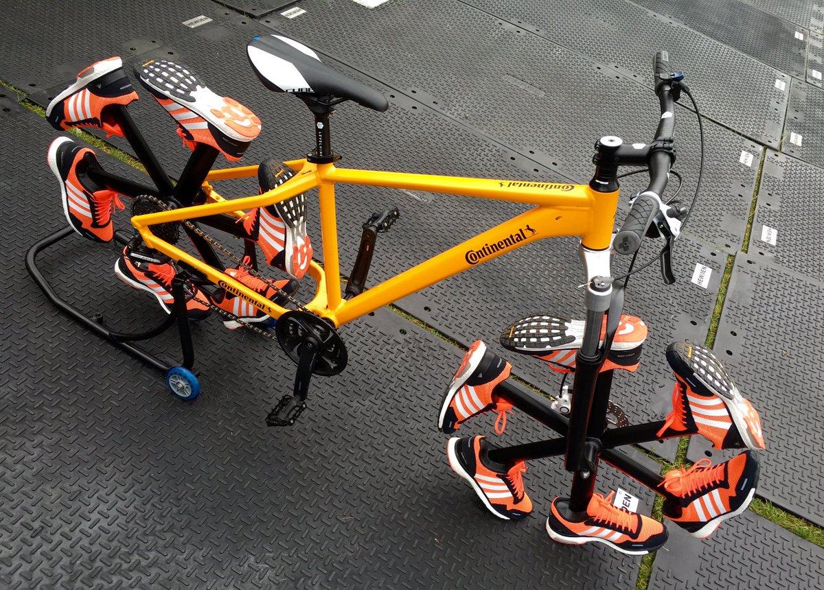 Na londonskom biciklističkom festivalu RideLondon posjetitelji su zatekli neobičan prizor. Bicikl koji koristi tenisice umjesto guma! Bicikl potpisuje njemački proizvođač guma Continental koji ga je ponudio posjetiteljima na testiranje.