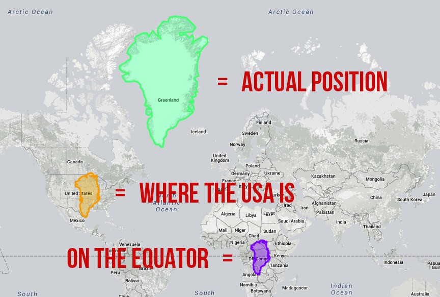 "Krivi" za naše iskrivljenu sliku svijeta to je cilindrična kartografska projekcija, koji je izumio flamanski geograf i kartograf Gerardus Mercator, koji se smatra utemeljiteljem moderne znanstvene kartografije. Ovo je godine 1569 izumio je način da Zemljinu površinu stavi na papir, tj. iz trodimenzionalnog u dvodimenzionalni oblik, no kao rezultat toga, brojni anomalije koje se ogledaju u veličini teritorija, što našu današnju percepciju veličine pojedinih dijelova svijeta čini potpuno iskrivljenom. Zbog transverzalne Mercatorove projekcije, veličina država/kontinenata jako varira ovisno o njihovoj udaljenosti od ekvatora (njegova projekcija zanemaruje proporcionalnu veličinu pojedinih dijelova površine, kopna i mora).