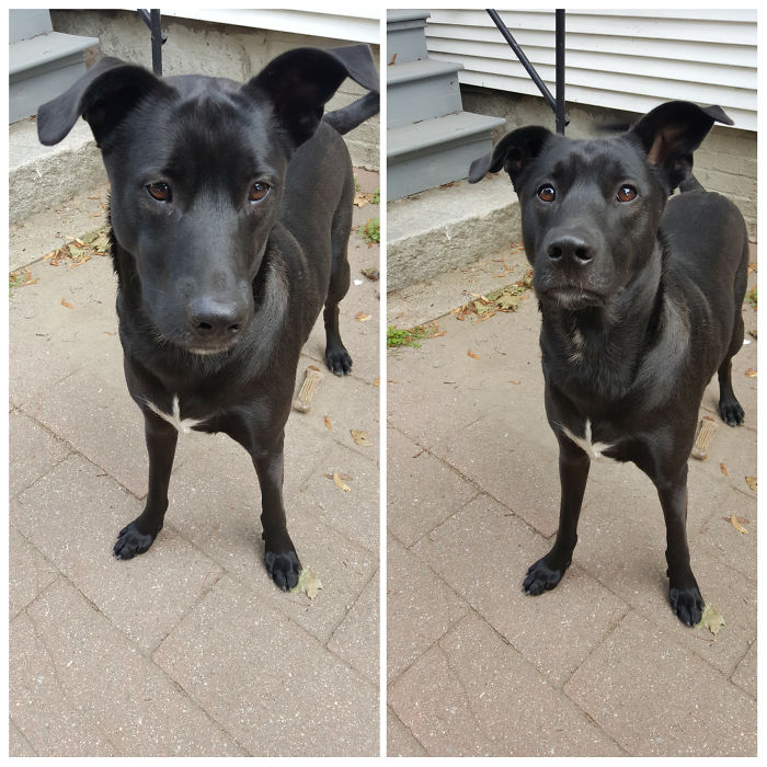 Še bolj kot besede to dokazujejo spodnje fotografije, ki primerjajo izraz na obrazu živali pred in po tem, ko jih lastnik pohvali. Medtem ko psi ob magični besedi ‘priden’ začnejo skoraj skakati od veselje, mačke to kaj dosti ne gane.