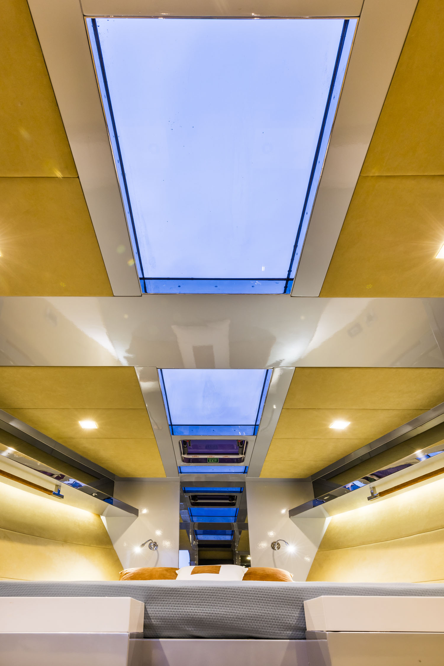 Kot bi verjetno lahko sklepali iz imena, je jahta dolga 38 čevljev, a so bili izdelovalci malce šaljivi, saj je v resnici dolga 39 čevljev ali nam bolj prijaznih 11,90 metra. Na širini 3,70 metra ponuja dovolj prostora za ves luksuzno, ki ga utegnete potrebovati, ko si zaželite malo morskega odklopa. Zunaj boste našli razkošen jedilni prostor, tuš, ležalnike in še kaj. 38-ka pa ni luksuzna samo na zunaj, v sebi namreč skriva še več. Popolna suita s lastnim tušem, kajuta za posadko in kar dve kuhinji, seveda z najboljšimi gospodinjskimi aparati Gaggenau. Ta supergliser poganjata dva Volvova motorja Penta IPS, svaki s po 300 konjskih snaga, ki ne samo, da omogočata Mazuju doseganje najvišje hitrosti pri 36 vozlih, temveč sta tudi za 30 % manj požrešna, omogočata za 40 % daljšo plovbo in sta za 50 % tišja od primerljivih motorjev. Poletje, sonce in morje že imamo, še po jahto skočimo, potem pa možgane na pašo in uživanje se lahko začne.