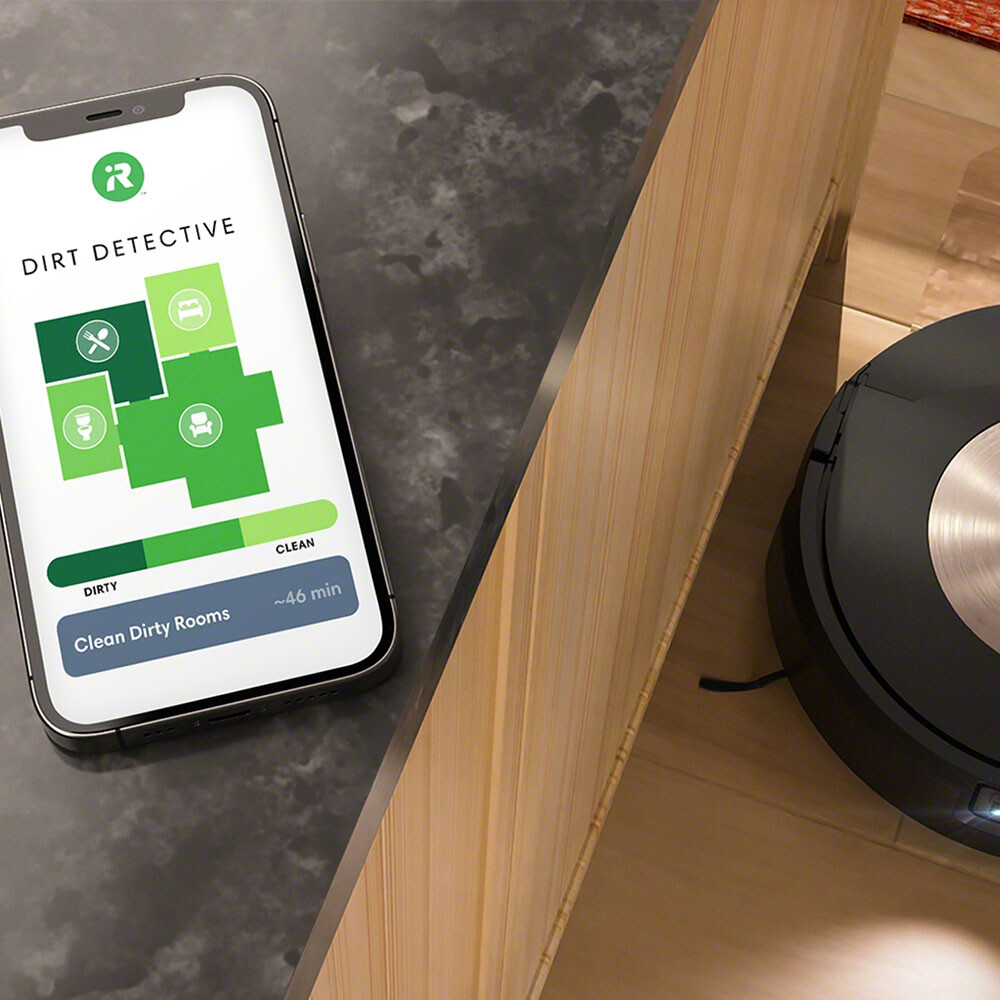 Roomba Combo™ j9+ ne voli zbrku – nađe se i u najkaotičnijim situacijama. Tehnologija pametne navigacije omogućuje mu navigaciju kroz različite prostore, izbjegavanje prepreka poput namještaja i tepiha te temeljito obavljanje zadaće. Možete kontrolirati kamo vaša Roomba smije, a kamo ne može ići jednostavnim postavljanjem ograničenja putem aplikacije na vašem mobilnom telefonu.