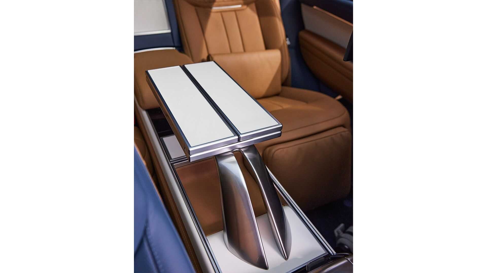 Unutrašnjost SUV-a s produženi međuosovinski razmak presvučena je dvobojnom kombinacijom kože i ima na raspolaganju 4 sjedala. Prednja sjedala su plave, a stražnja bež boje. Izdanje Carmel donosi poseban vez i šavove, a pronaći ćete ga čak i unutra keramika, koji je opet dostupan u dvije različite nijanse. Putnici na stražnjim sjedalima imaju elektronički pomični stolić za kavu i elektronički pomične držače za piće. Uz to, naravno, spadaju i hladnjak i kristalne čaše proizvođača Dartingtonov kristal.