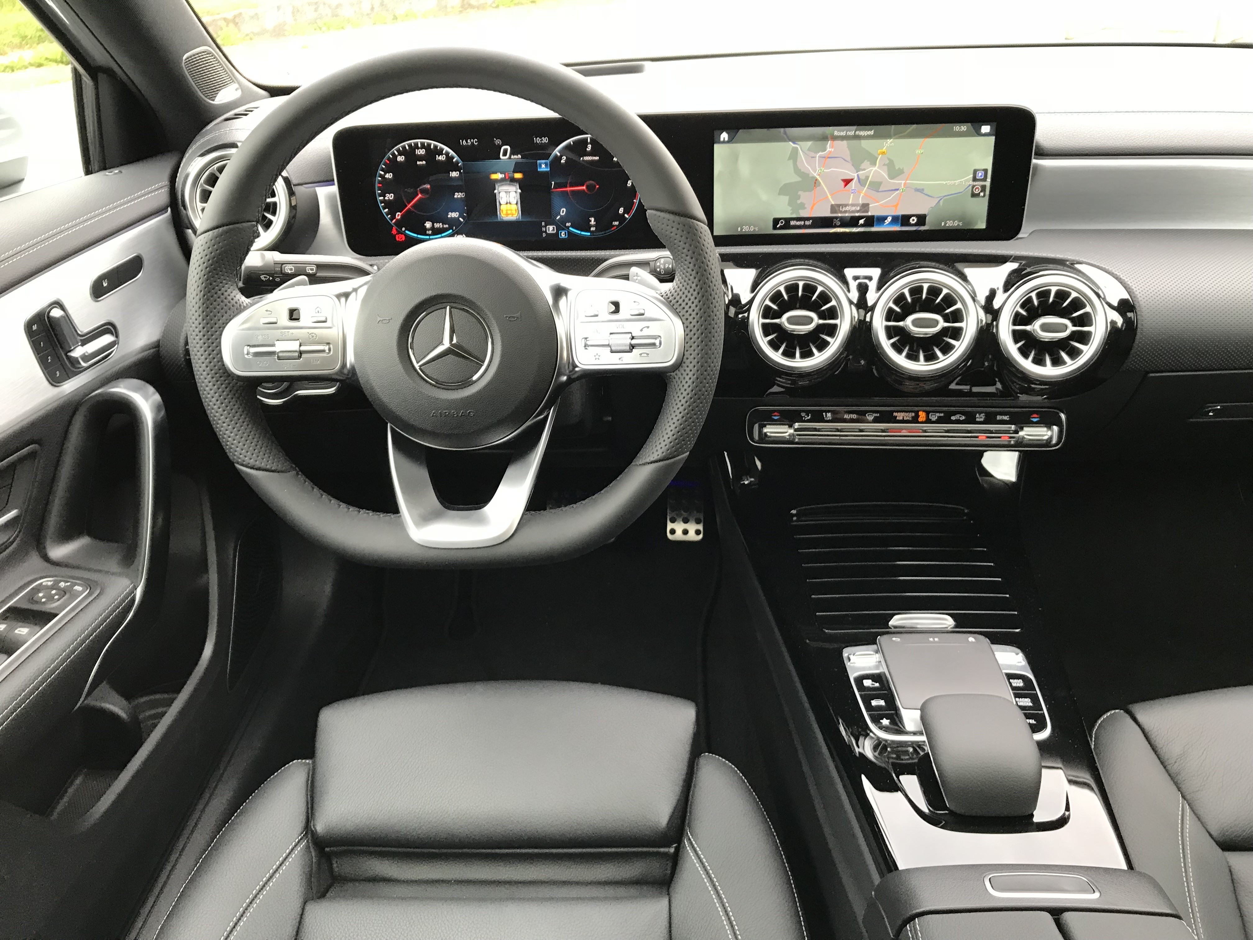 Notranjost je občutno spremenjena, najbolj opazna pa sta zagotovo 10,25 inča zaslona na vrhu armaturne plošče. Platformo MBUX lahko upravljamo na četiri načine. Z obvolanskimi tipkami, glasovnimi ukazi, drsno ploščico ali prek zaslona občutljivega na dotik. Glasovni ukazi žal niso na voljo v slovenskem jeziku, v poštev pridejo svetovni jeziki, kot so angleščina, nemščina, francoščina, italijanščina in drugi. Nekateri asistenčni sistemi so celo bolj napredni, kot jih boste našli v razredu S. Tu lahko omenimo pomočnika za spremljanje mrtvega kota, ki deluje še 3 minute po tistem, ko smo avtomobil že ugasnili. Nadgrajen je tudi navigacijski sistem, ki me drugim omogoča prikaz s tako imenovano obogateno resničnostjo.