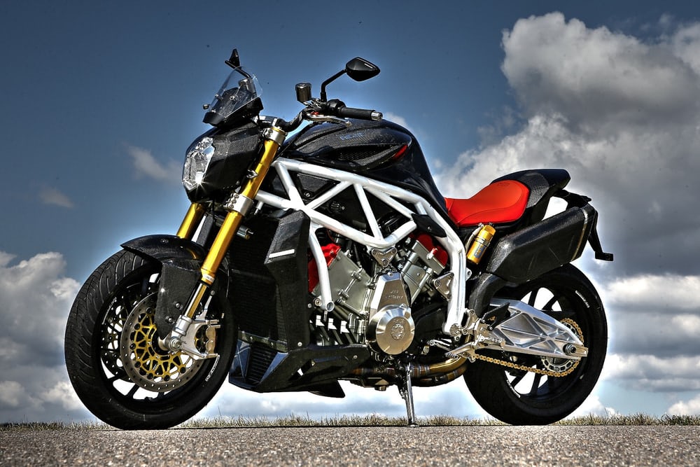Bez oklopa Midau, koji je izrastao na travnjaku 2004. godine Miroslav Felgra, koja je htjela veliki sportski motocikl, hvali se sa 240 konjskih snaga (160 Nm okretnog momenta), za teške uvjete rada 90 stupnjeva V6 jedinica, ovjes Ohlins, premium kočioni diskovi Brembo, cjevasti okvir Rešetka (zbog čega je istodobno okretan i stabilan), tehnički sofisticirani aluminijski stražnji ovjes i šest auspuha.