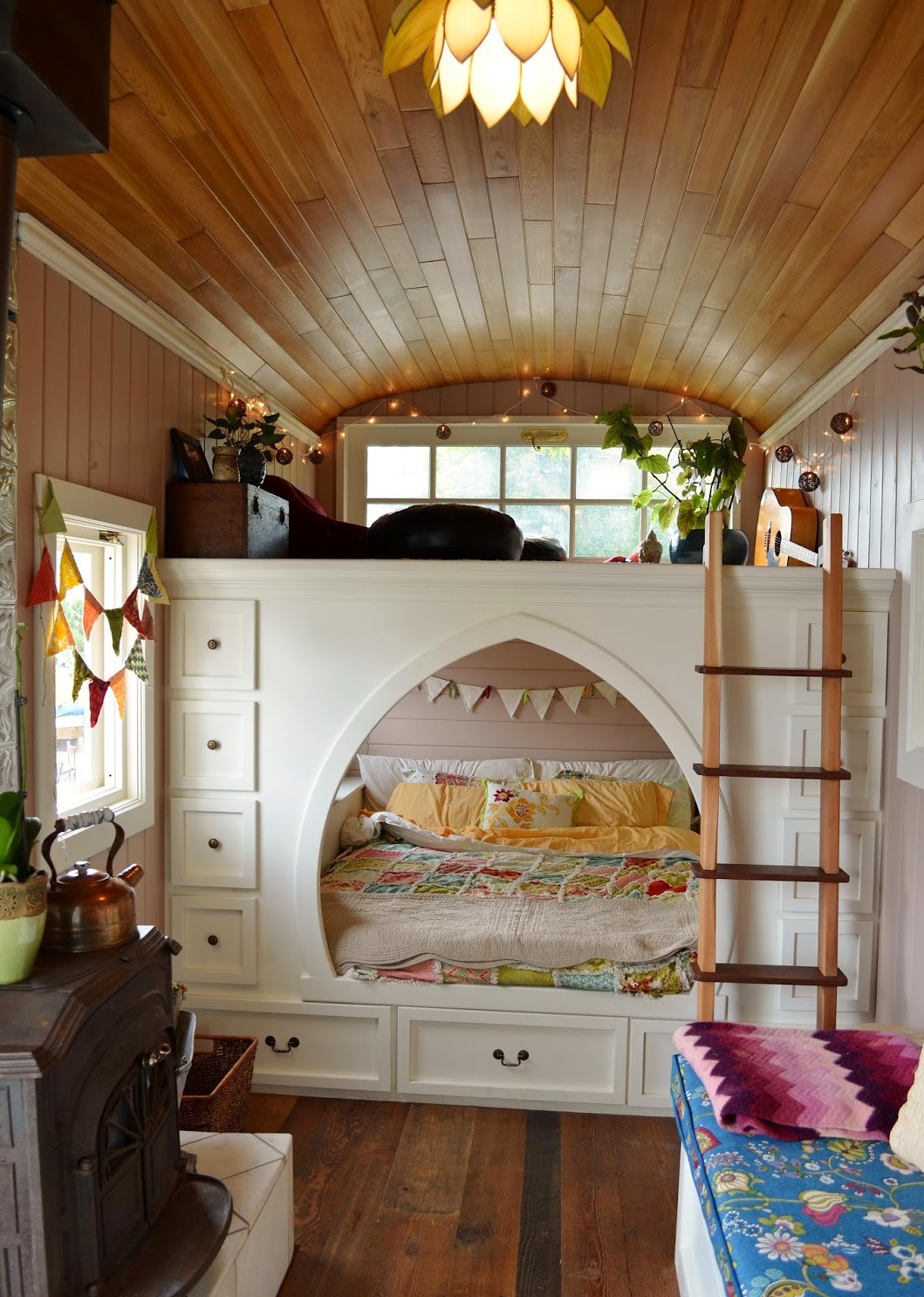 Mnoštvo prozora i podovi od borovine osiguravaju da je ovaj prijenosni mikrodom stalno preplavljen svjetlom. Ladice i ormarići pružaju prostor kako za opuštanje, tako i za njihovu neizostavnu zadaću - skladištenje.